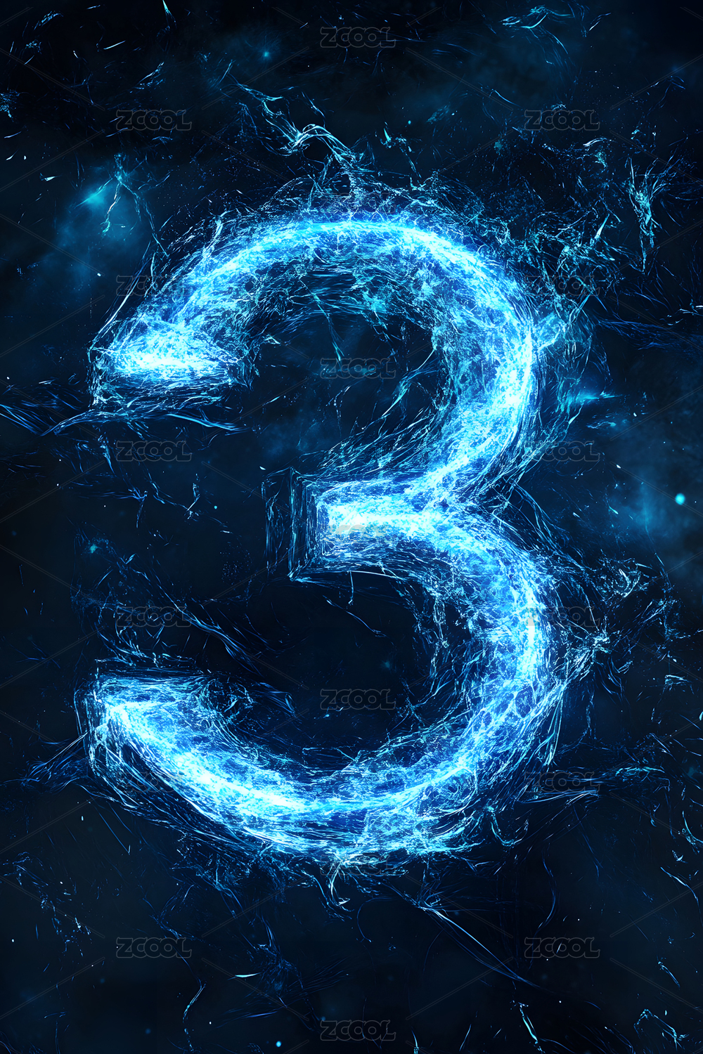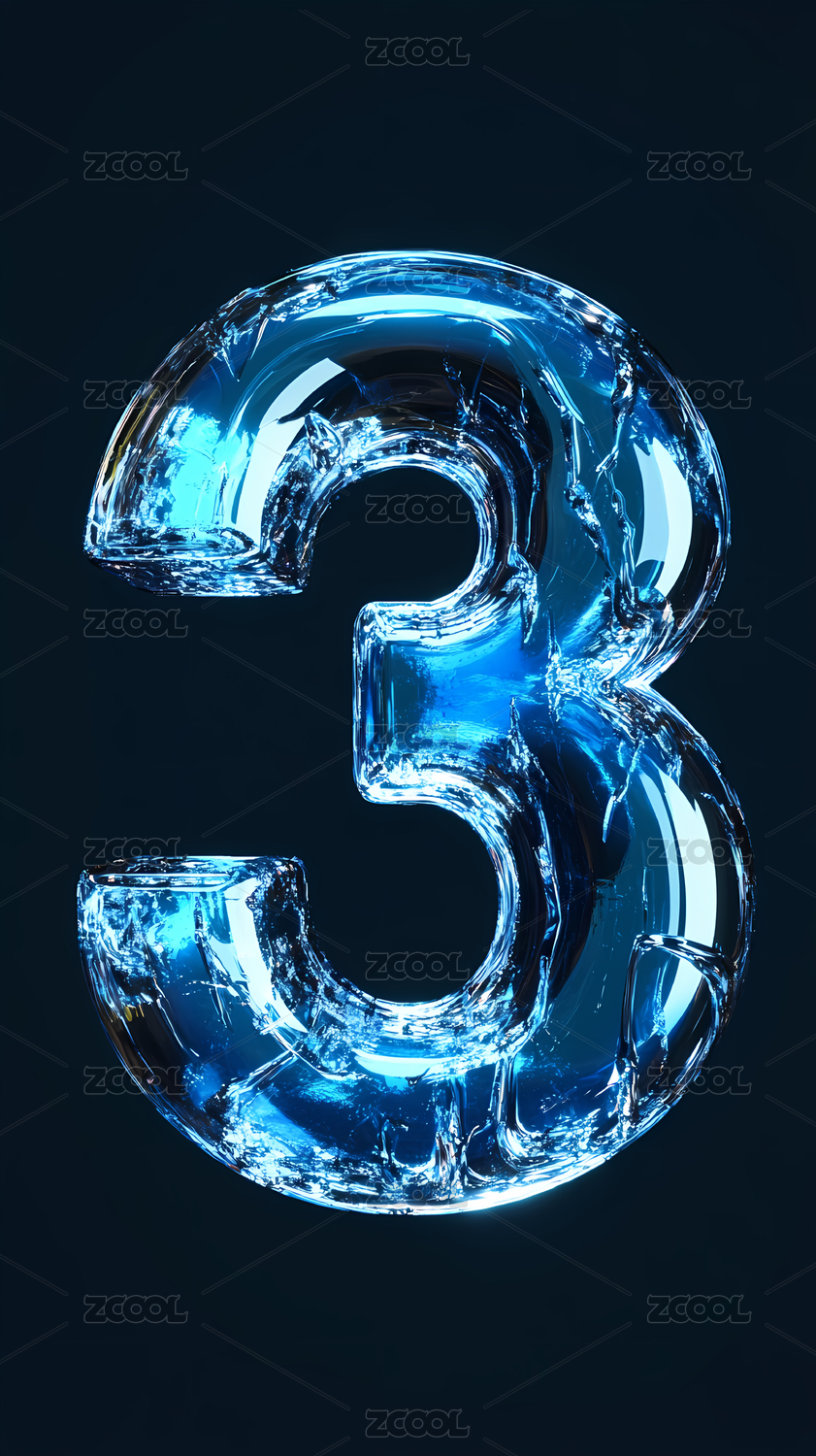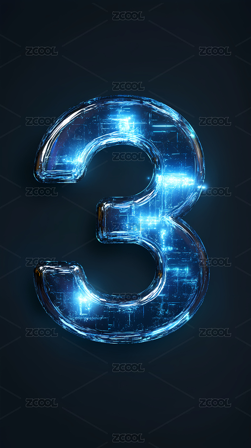 蓝色科技感透明玻璃数字3