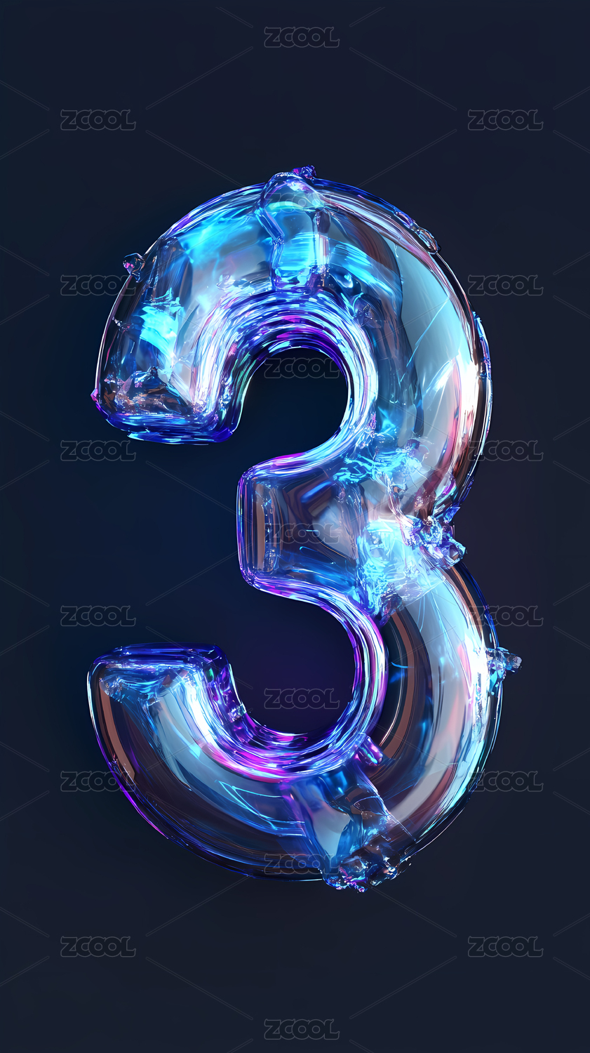 3D炫彩色透明发光数字3