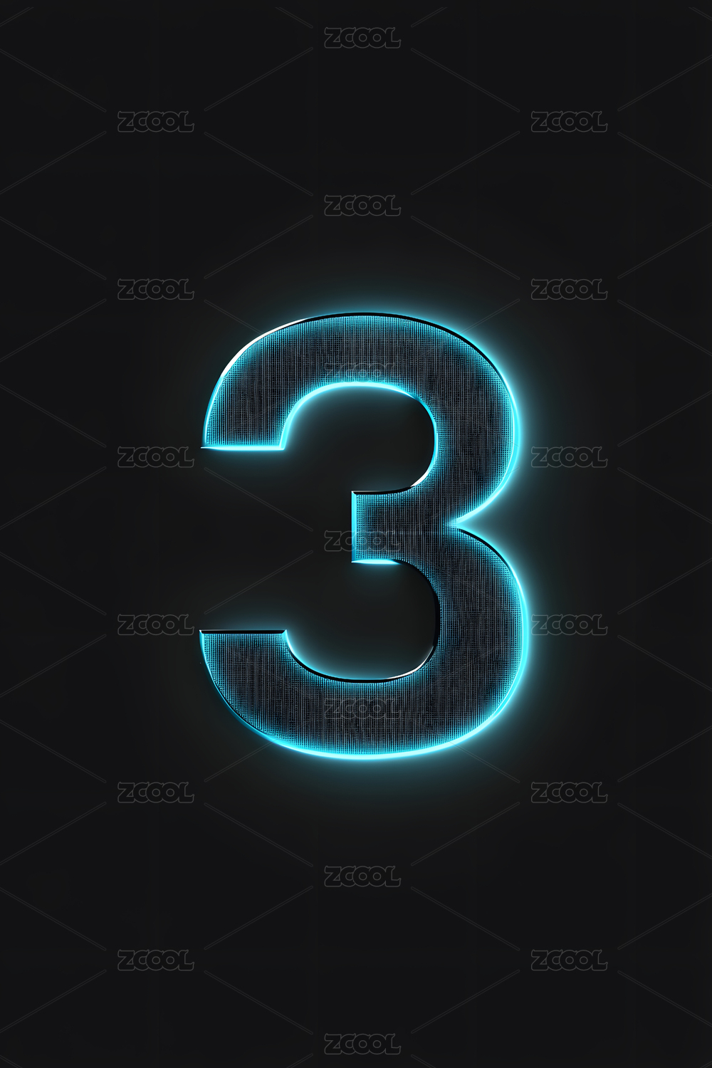 霓虹数字3发光艺术效果