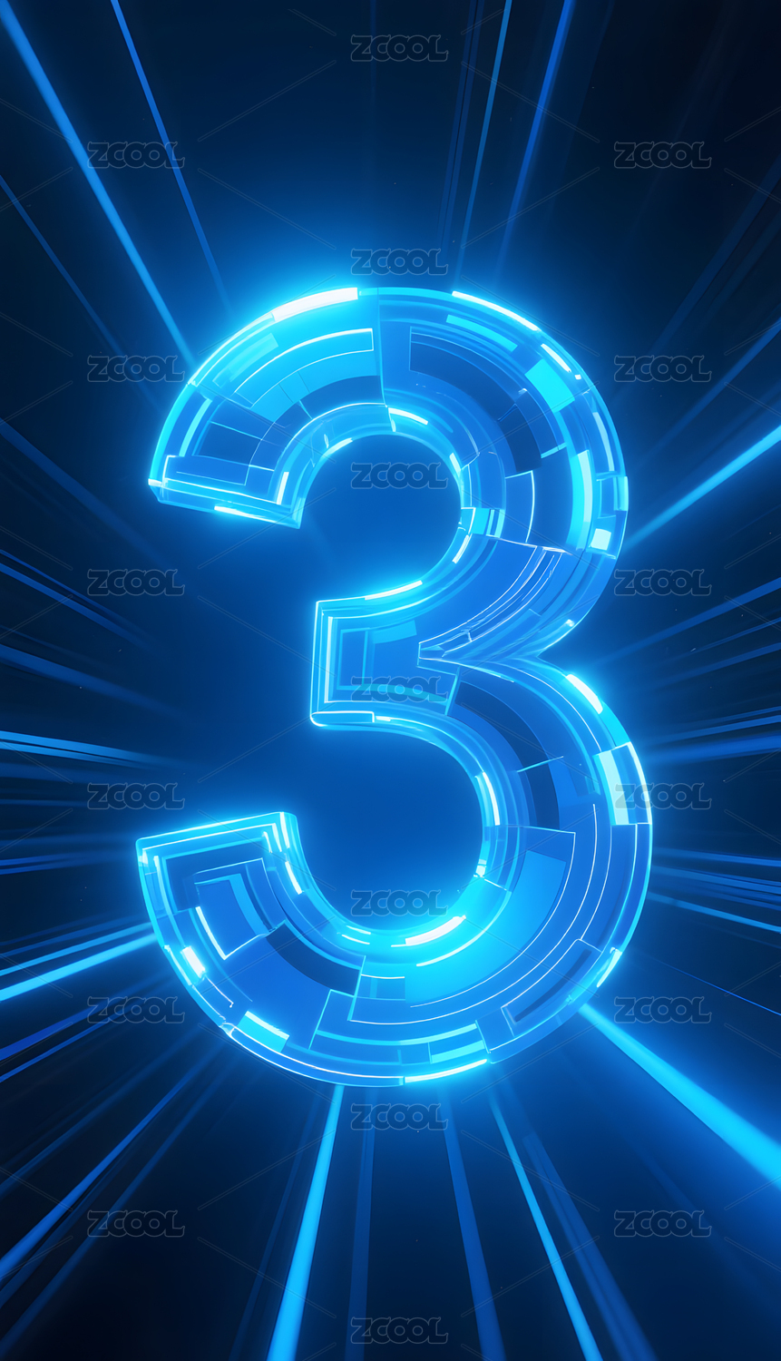 蓝色科技风数字3光效背景