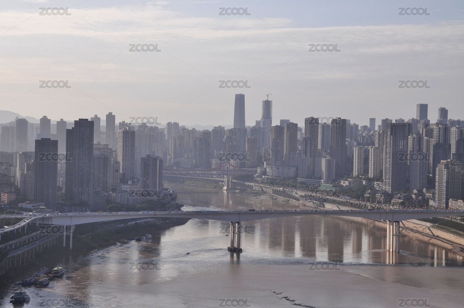 重庆嘉陵江渝澳大桥轻轨与江北区城市建筑