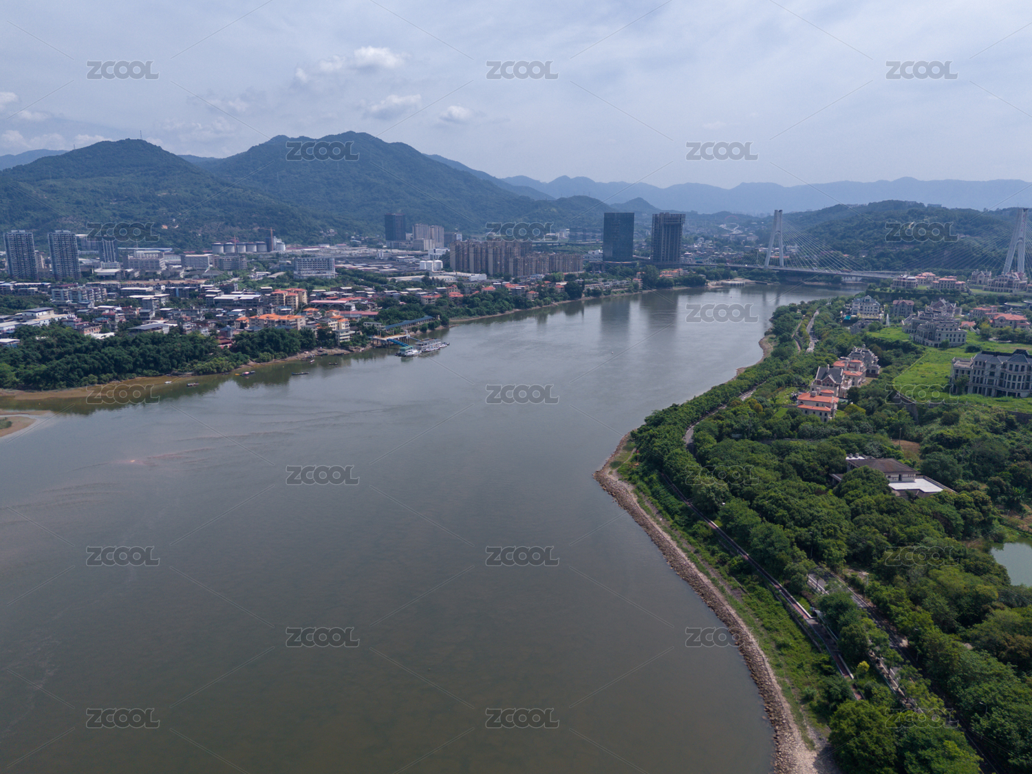 宽阔的闽江江面及岸边的建筑,中国福州