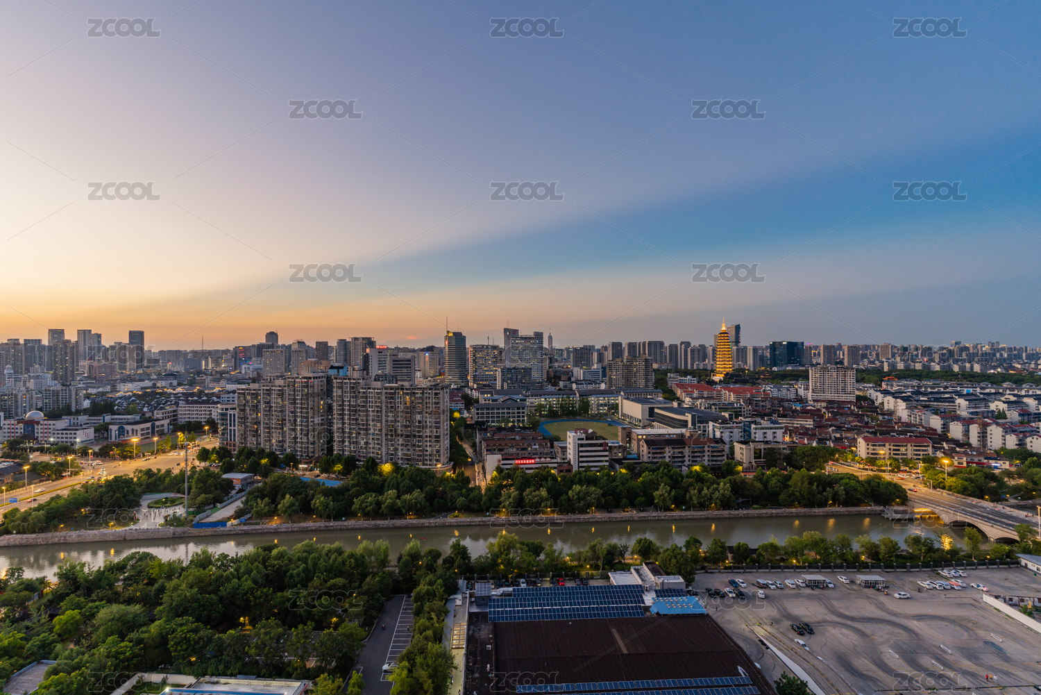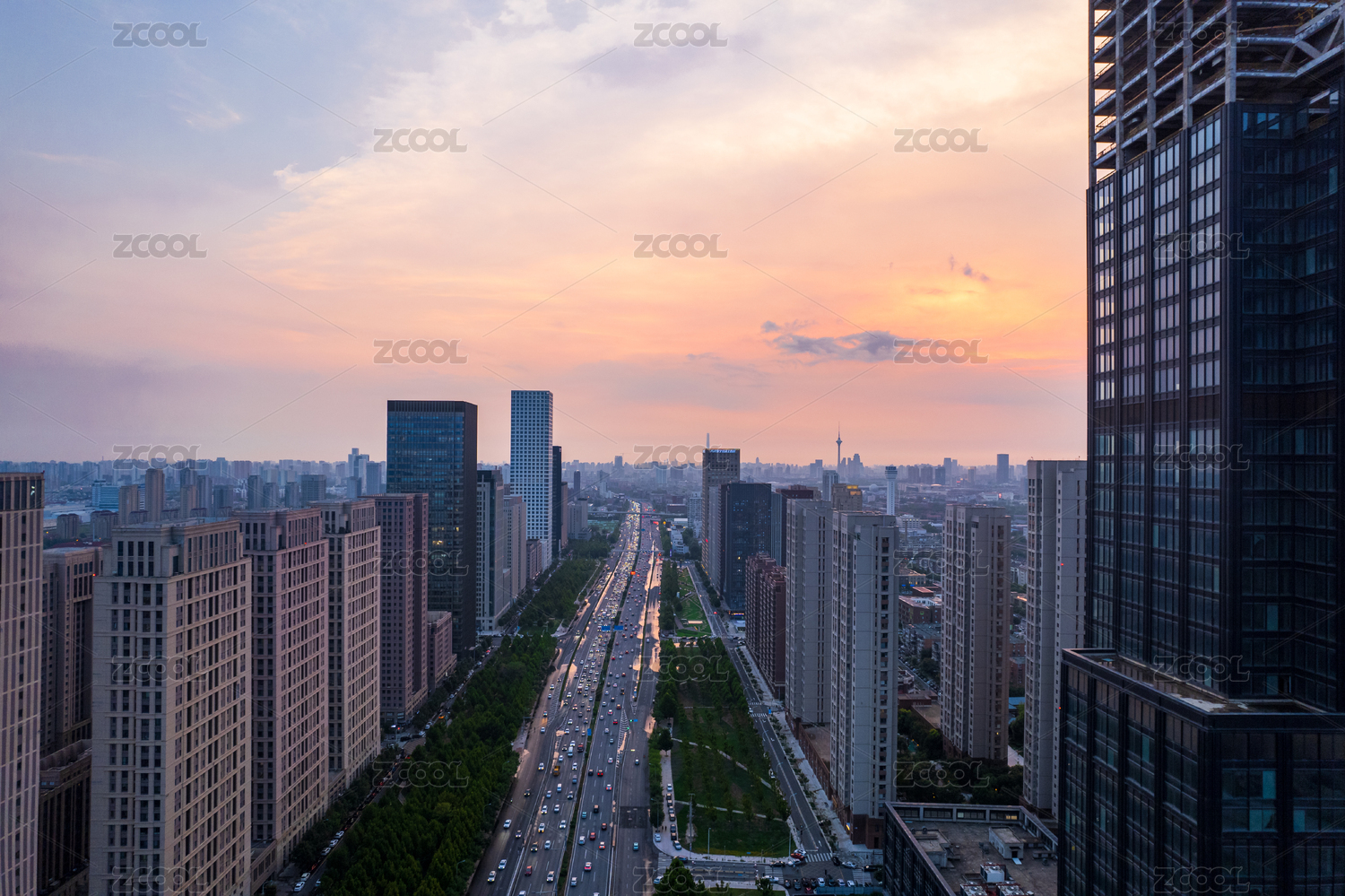 天津金融中心海河沿岸城市建筑日落晚霞风光
