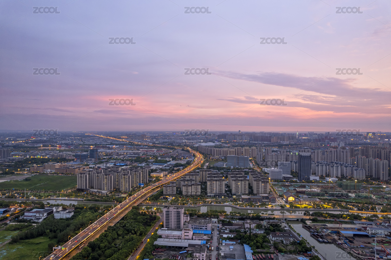 天津海河海津大桥沿岸城市建筑日落风光航拍