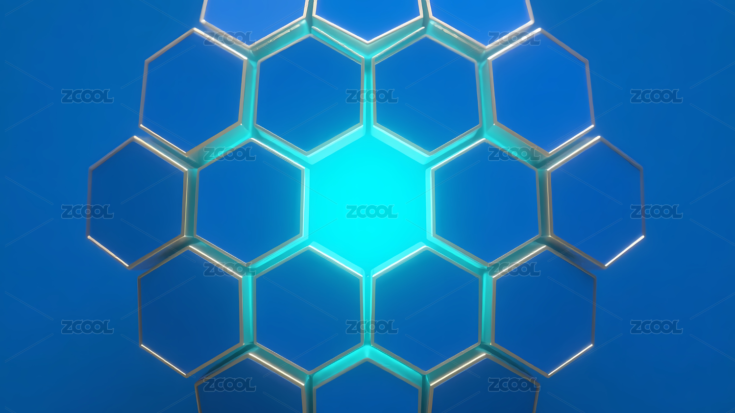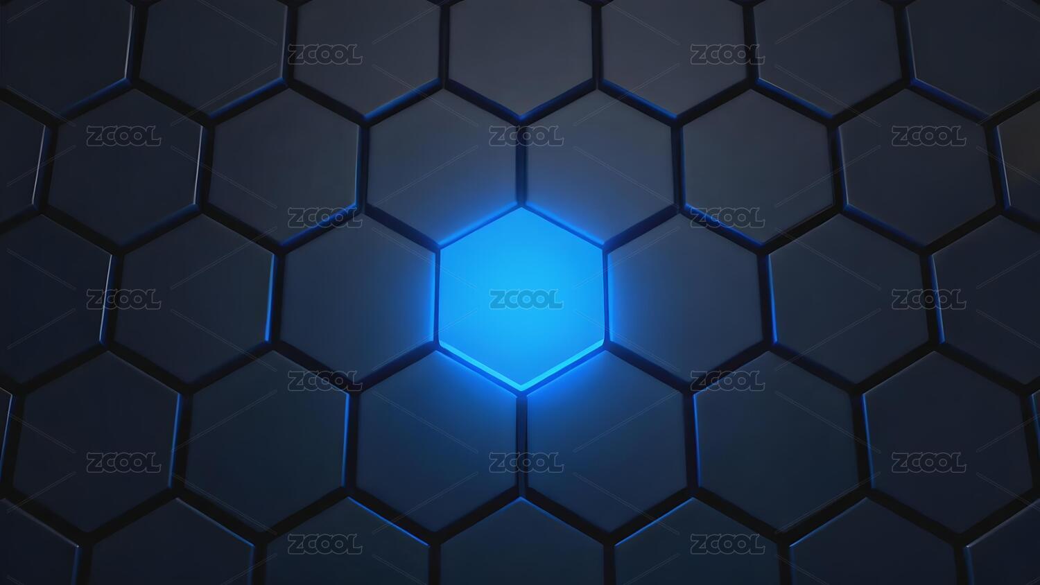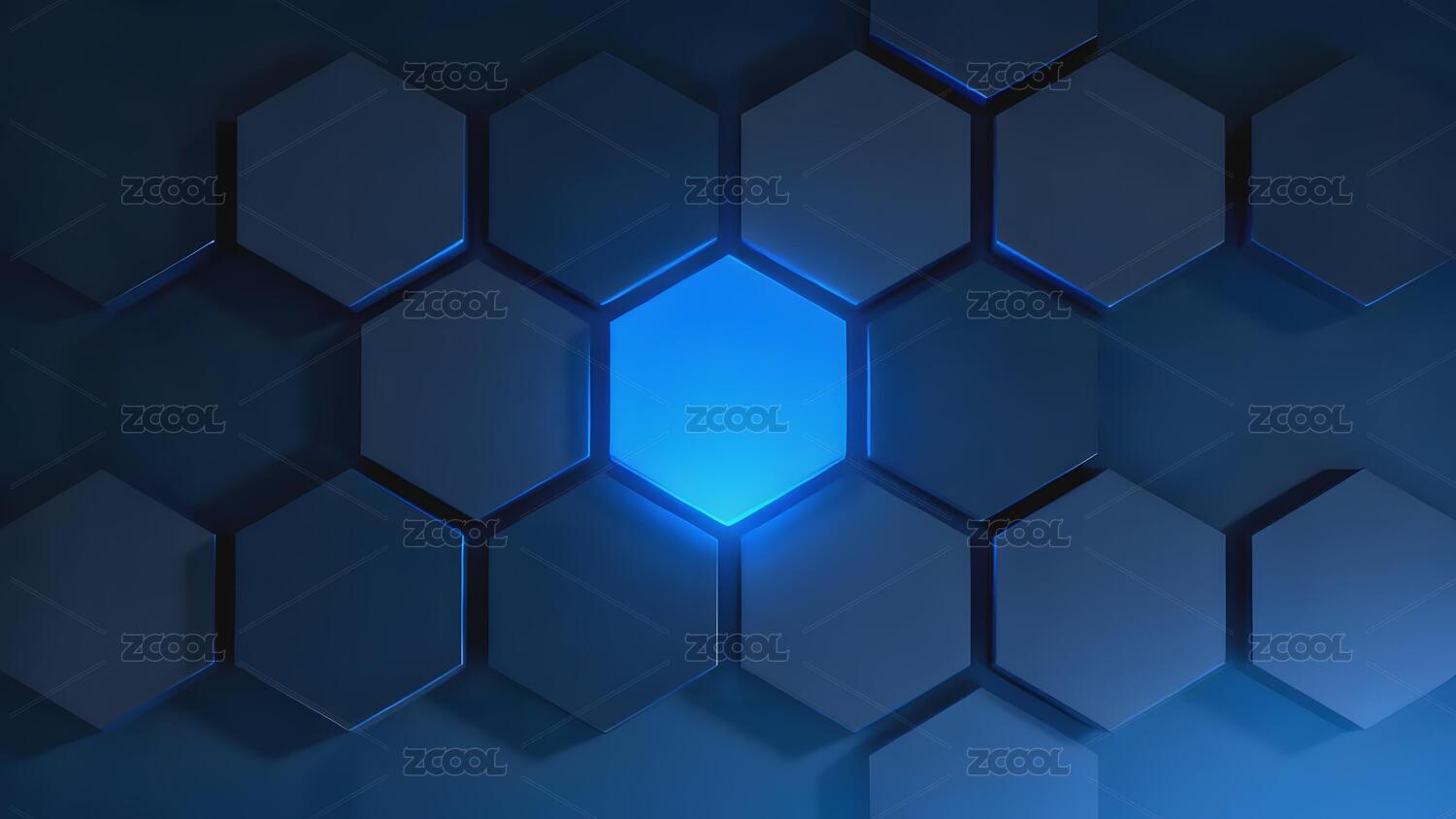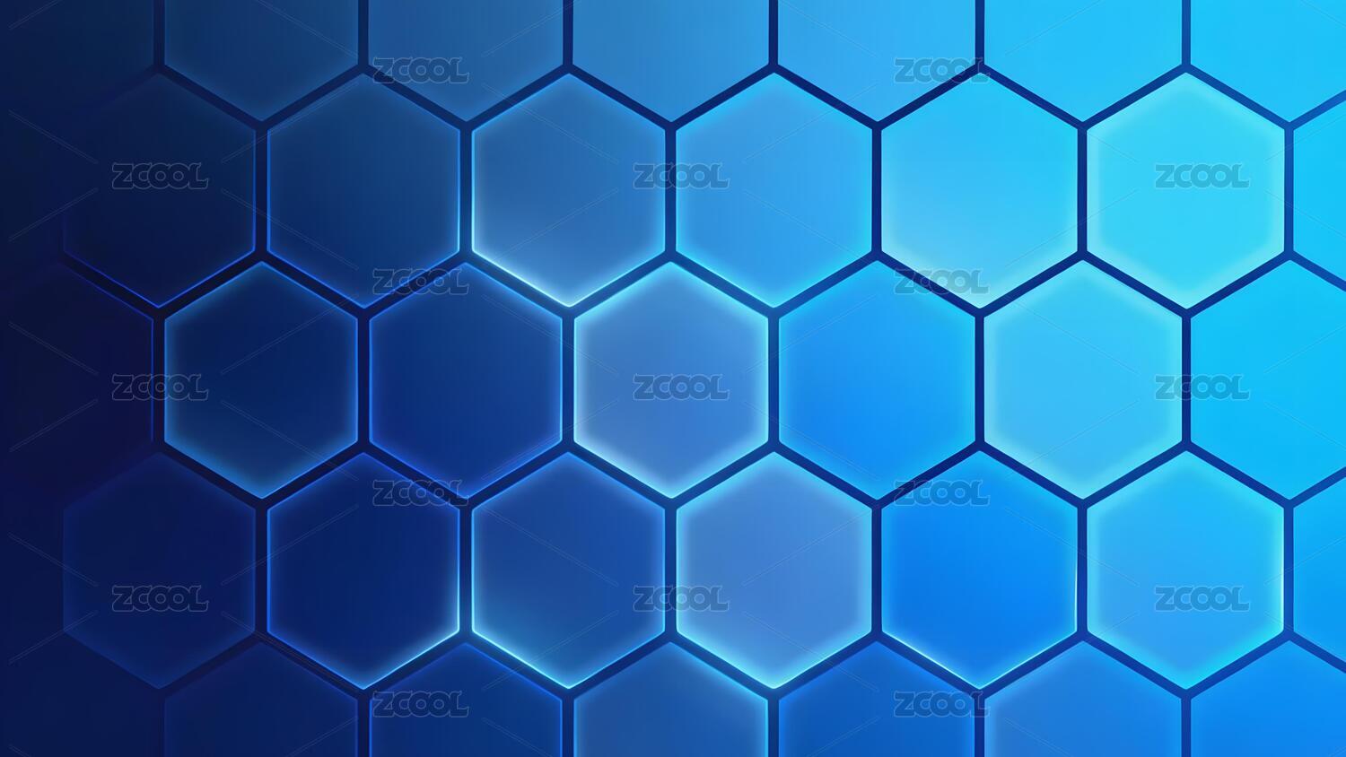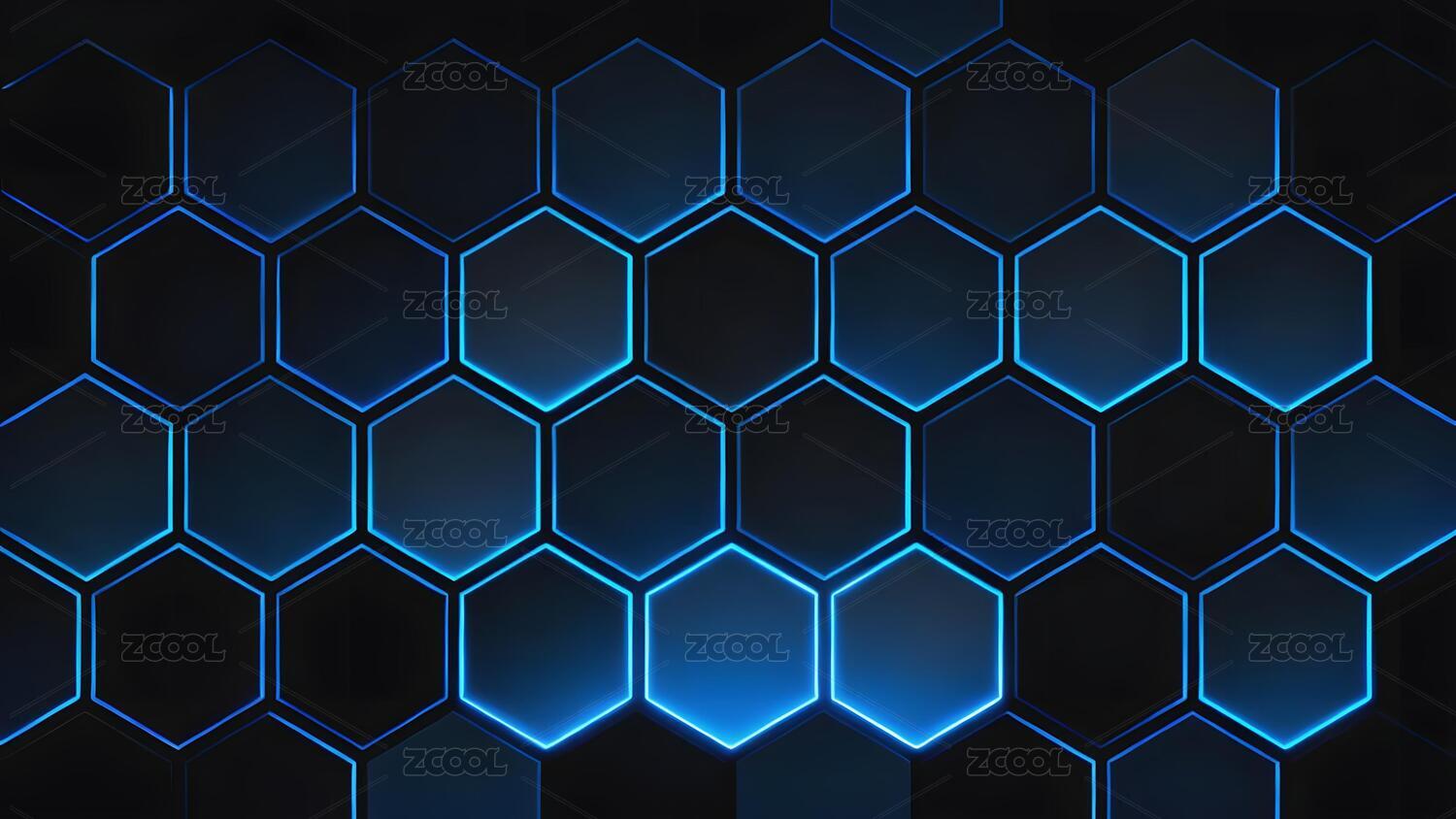 蓝色发光六边形网格图案