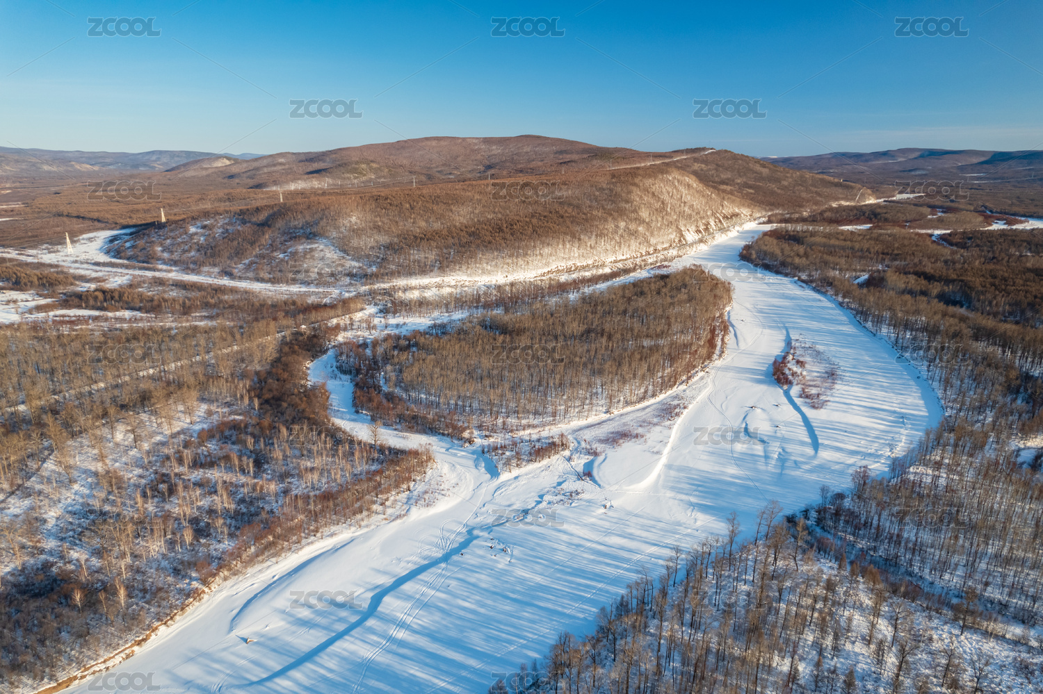 冬季黑龙江漠河市北极村冻结的中俄界河自然