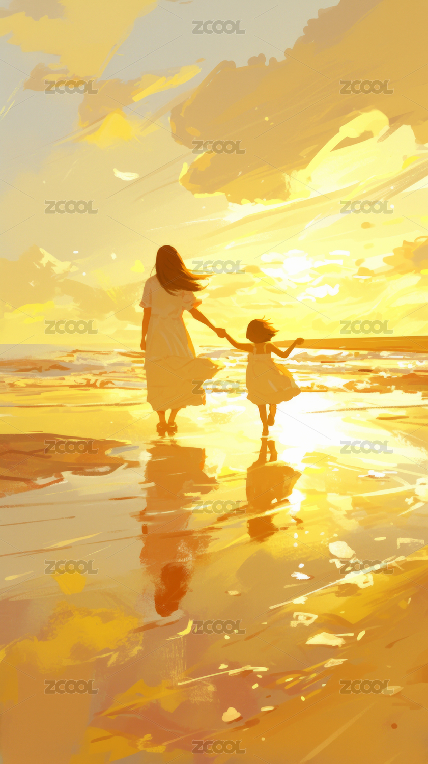 母亲节,节日,母婴,活动,插画,卡通,温馨,场景,母亲,植物