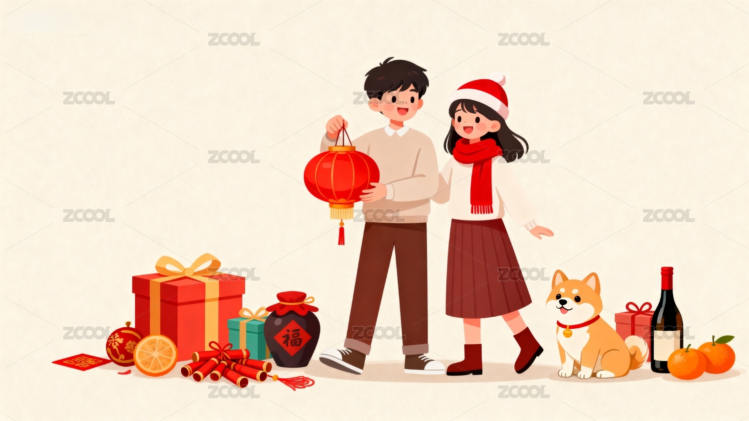 商务,插画,唯美,人物,女孩,绘本,男孩,情侣,夫妻,新年