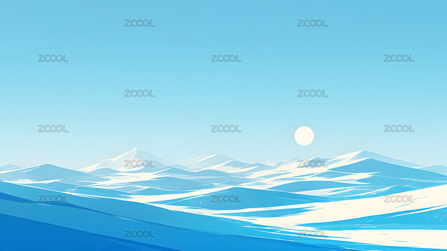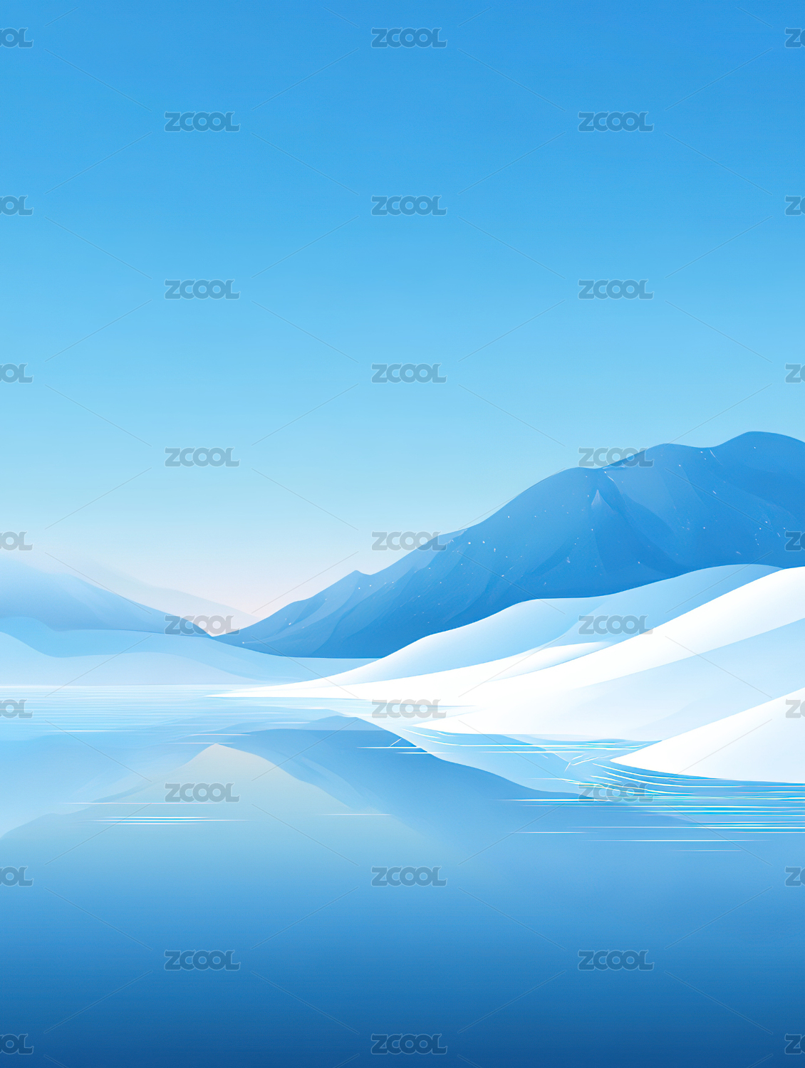 蓝色,背景,纯净,风景,简约,插画,扁平,自然,风光,雪山