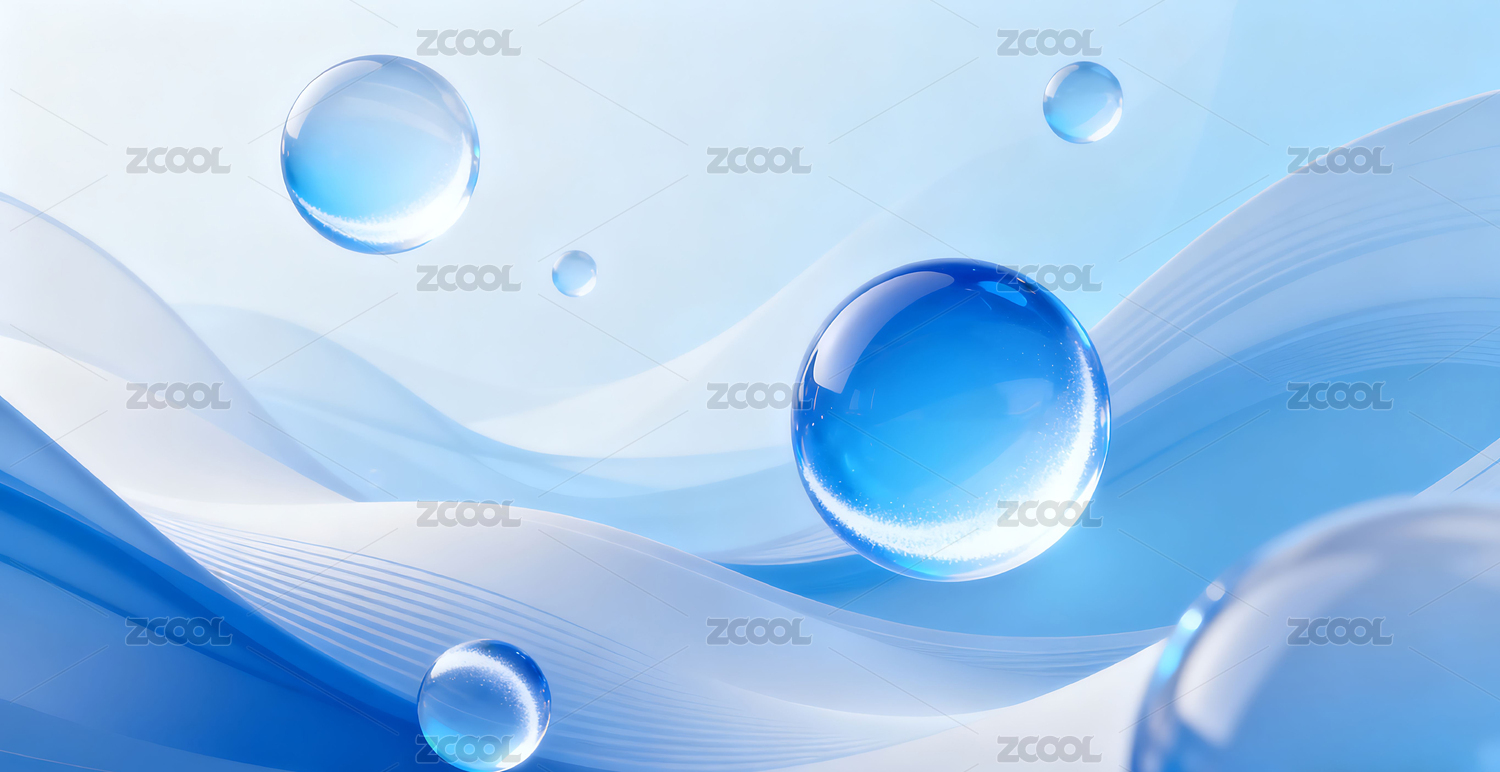 蓝色波浪与气泡抽象图案