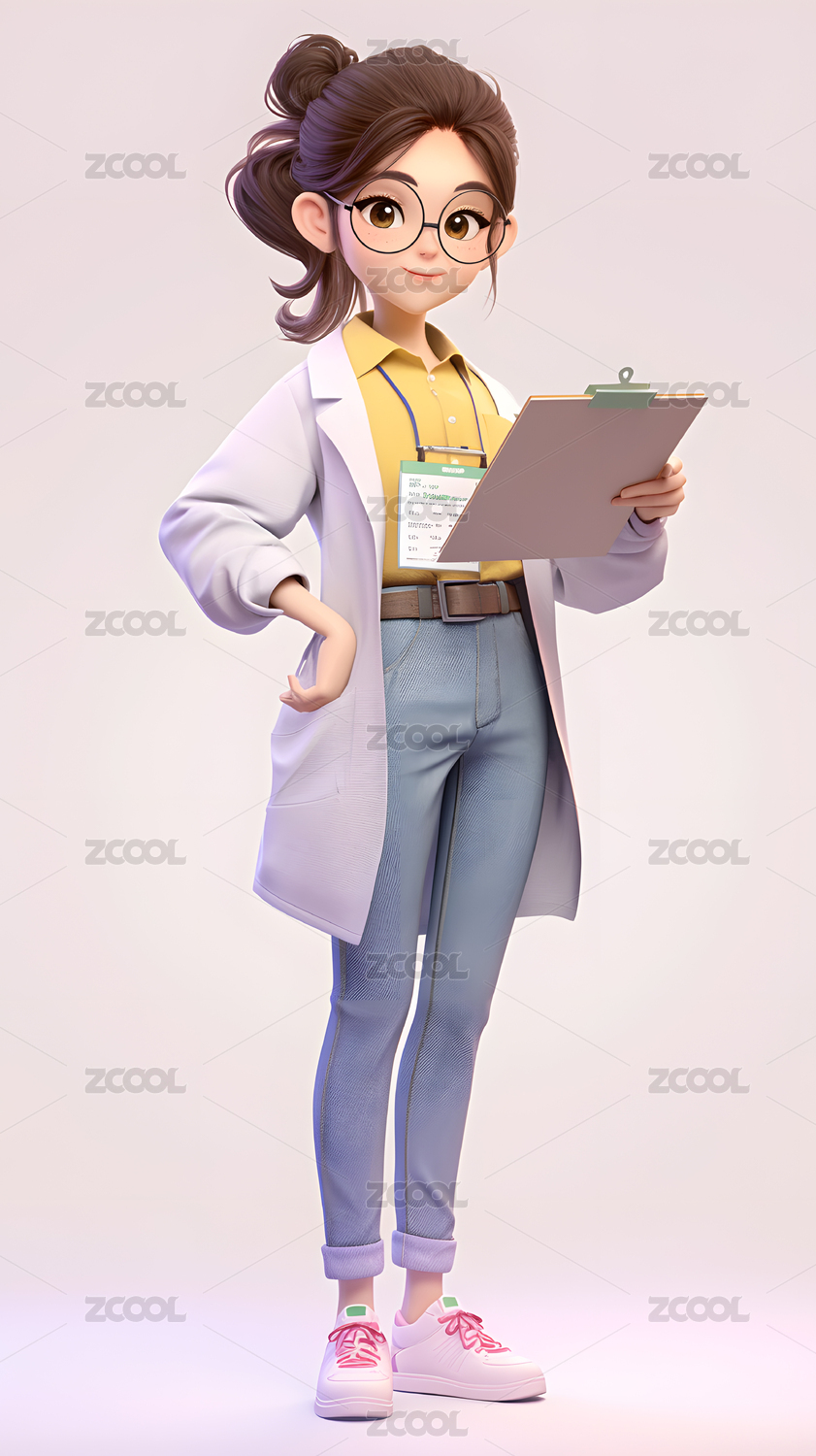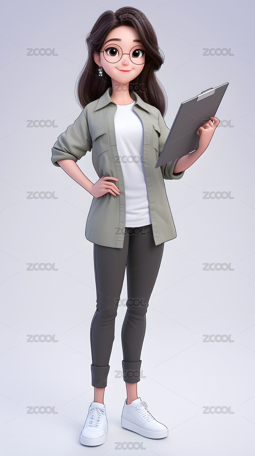 3D拿着课本带着眼镜的少女