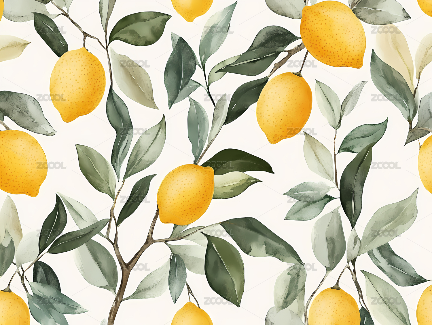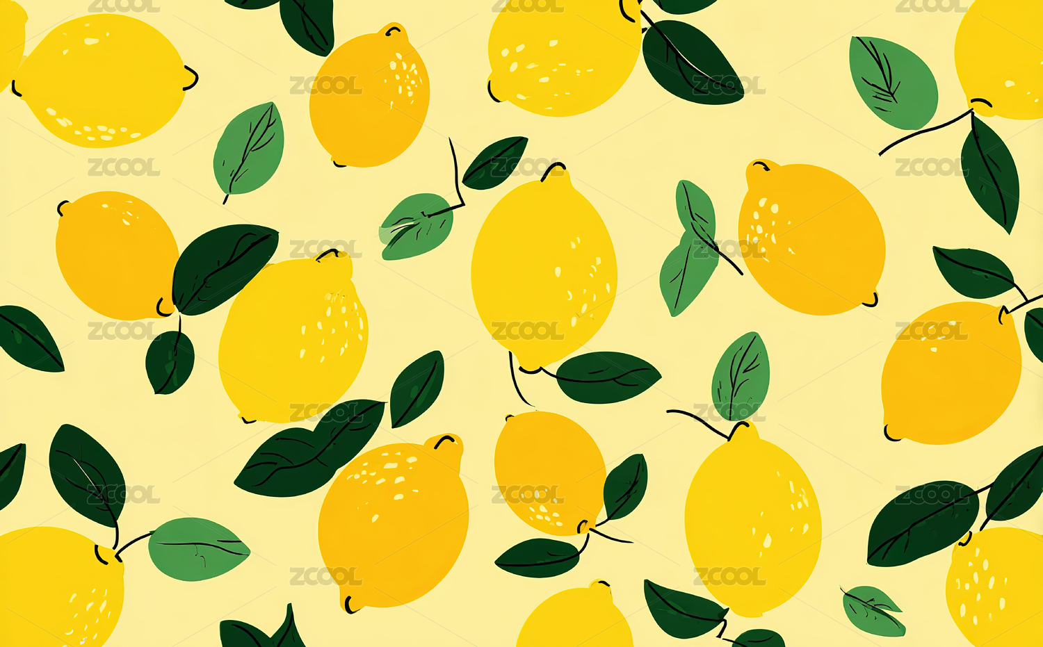 手绘柠檬水果四方连续图案