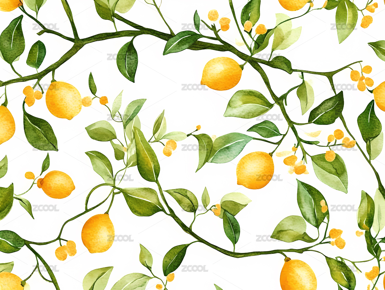 柠檬枝叶插画图案