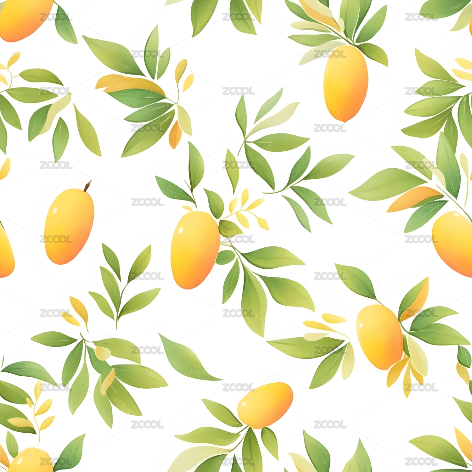 四方连续图案插画白底水果植物芒果黄