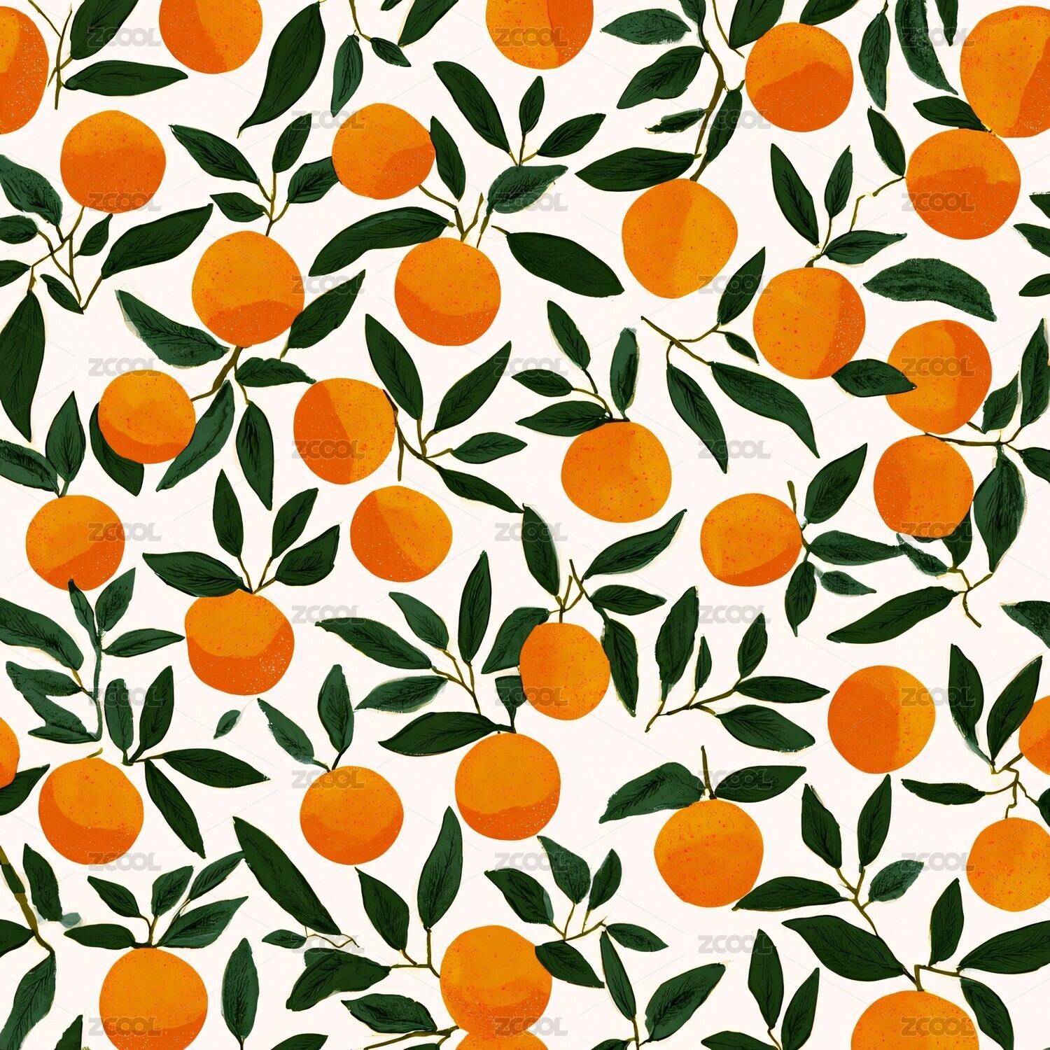 橙色水果与绿叶插画图案