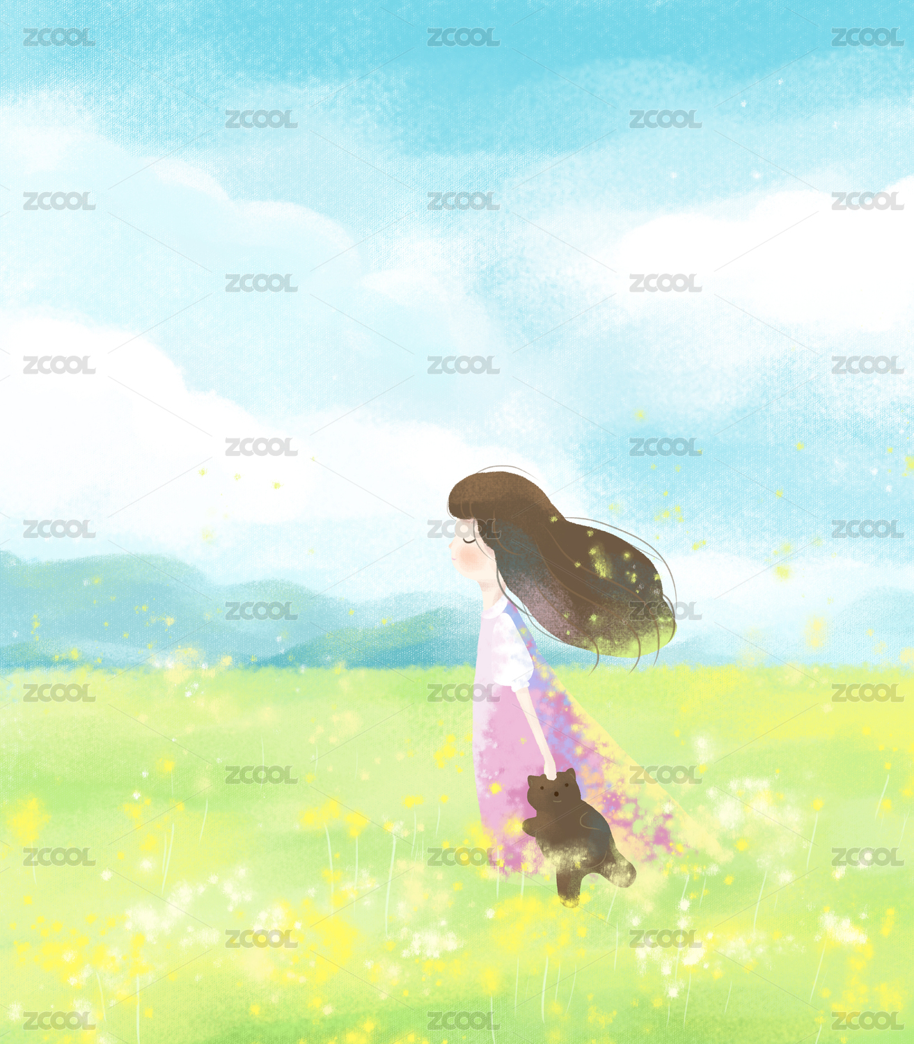 花,植物,草丛,花丛,色彩,夏天,春天,天空,女孩,人物