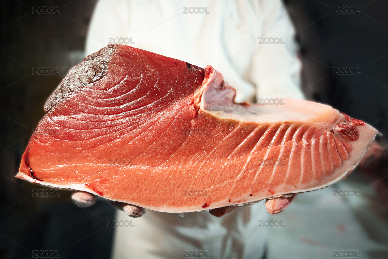 白色砧板上厨师用精湛的刀工展示鱼脍