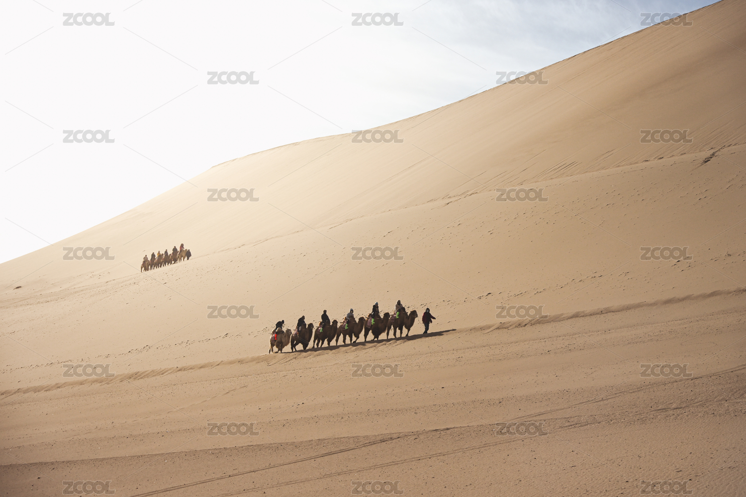 甘肃省敦煌市鸣沙山-沙漠中的骆驼