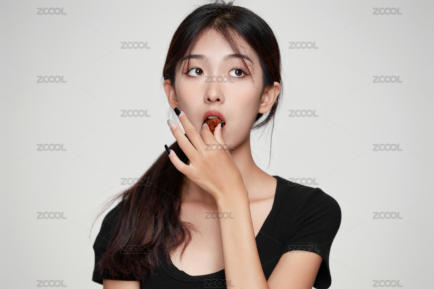 大吃特吃猪蹄块的亚洲可爱少女人像
