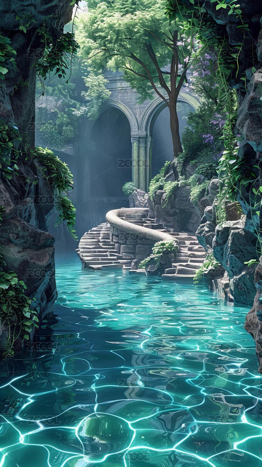 神秘黑暗奇幻地牢走廊环境概念艺术插画