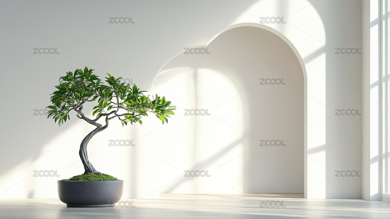 简约室内空间与盆栽