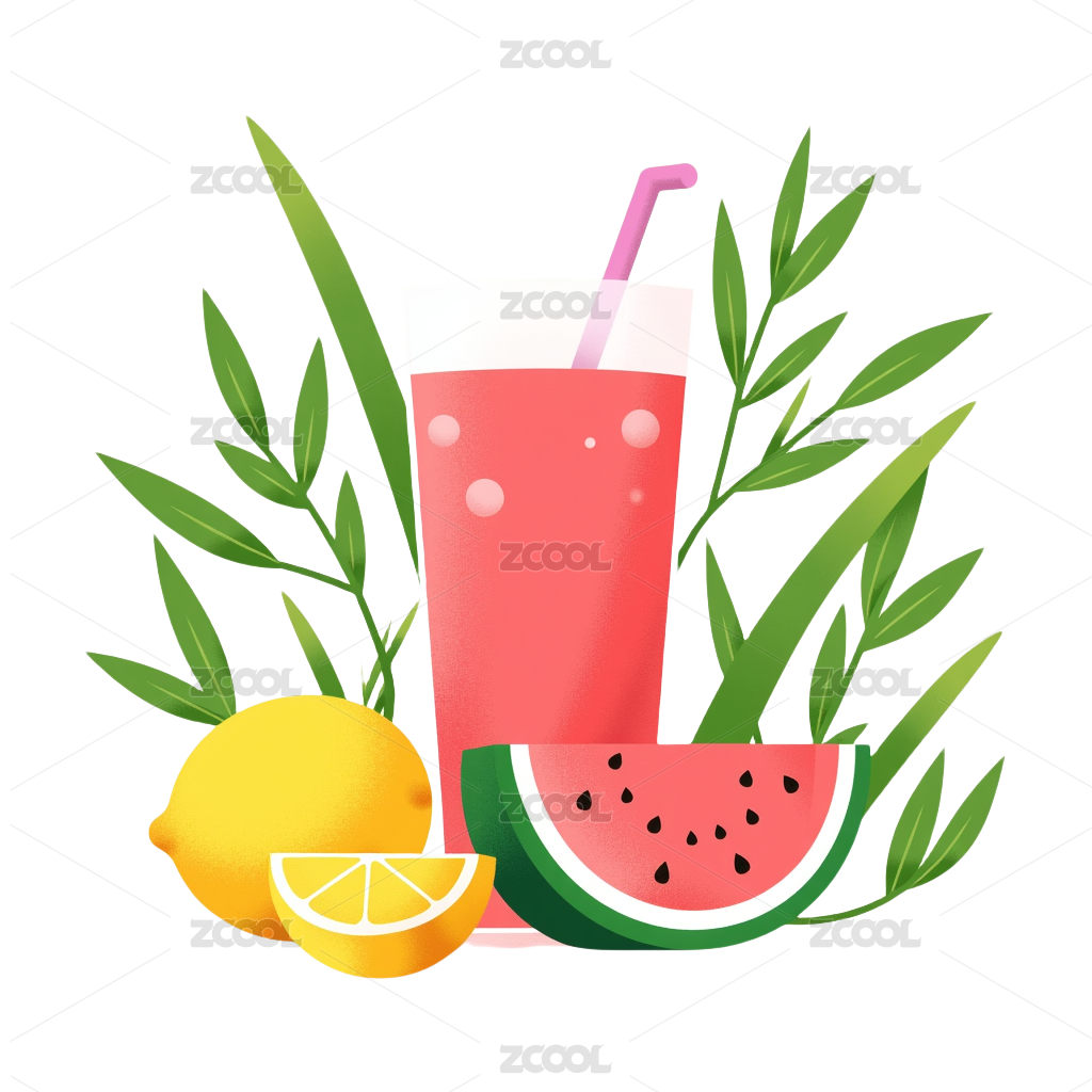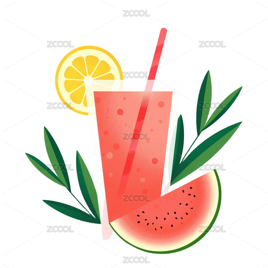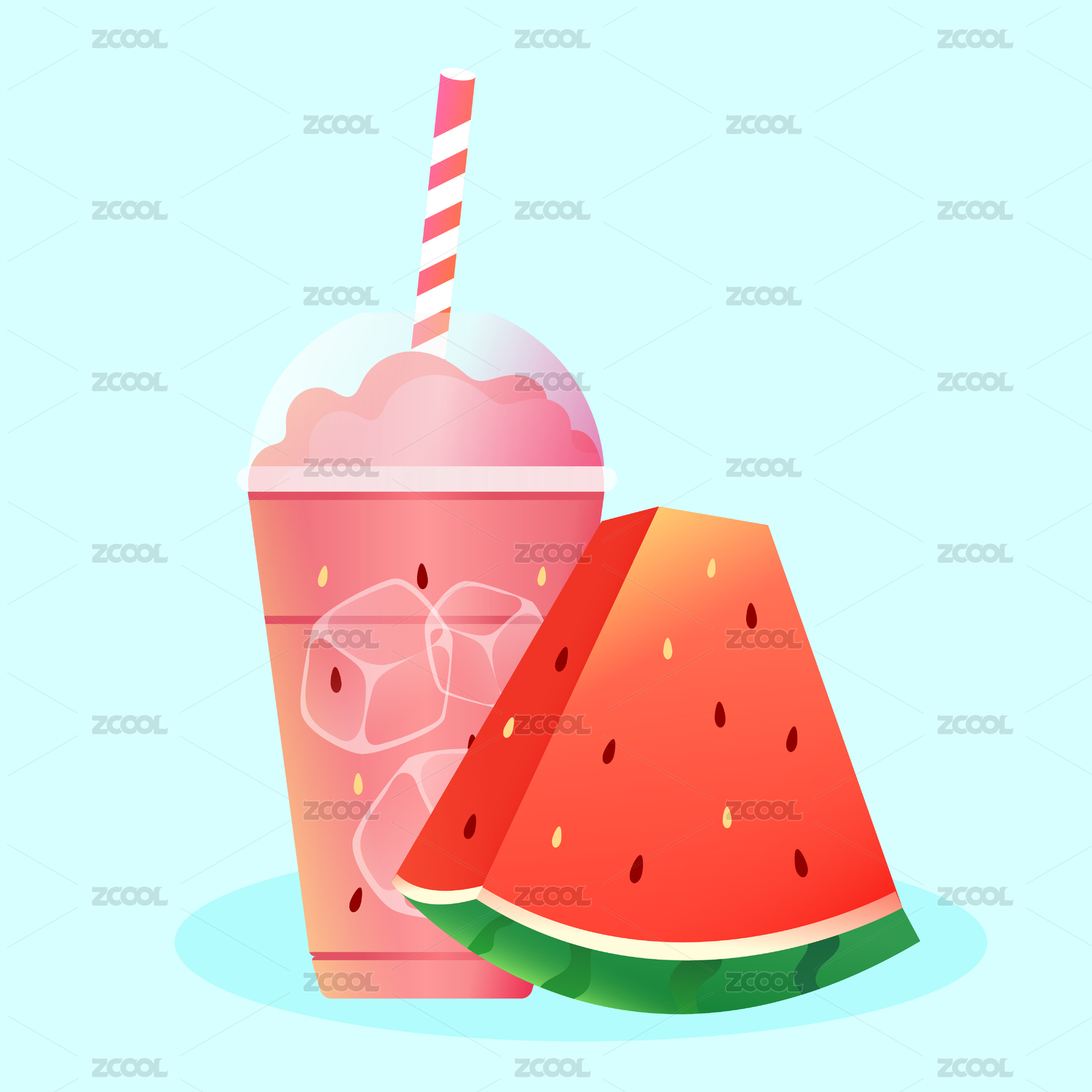 果汁,西瓜汁,冰块,西瓜,夏天,饮料,甜品,美食,扁平,渐变