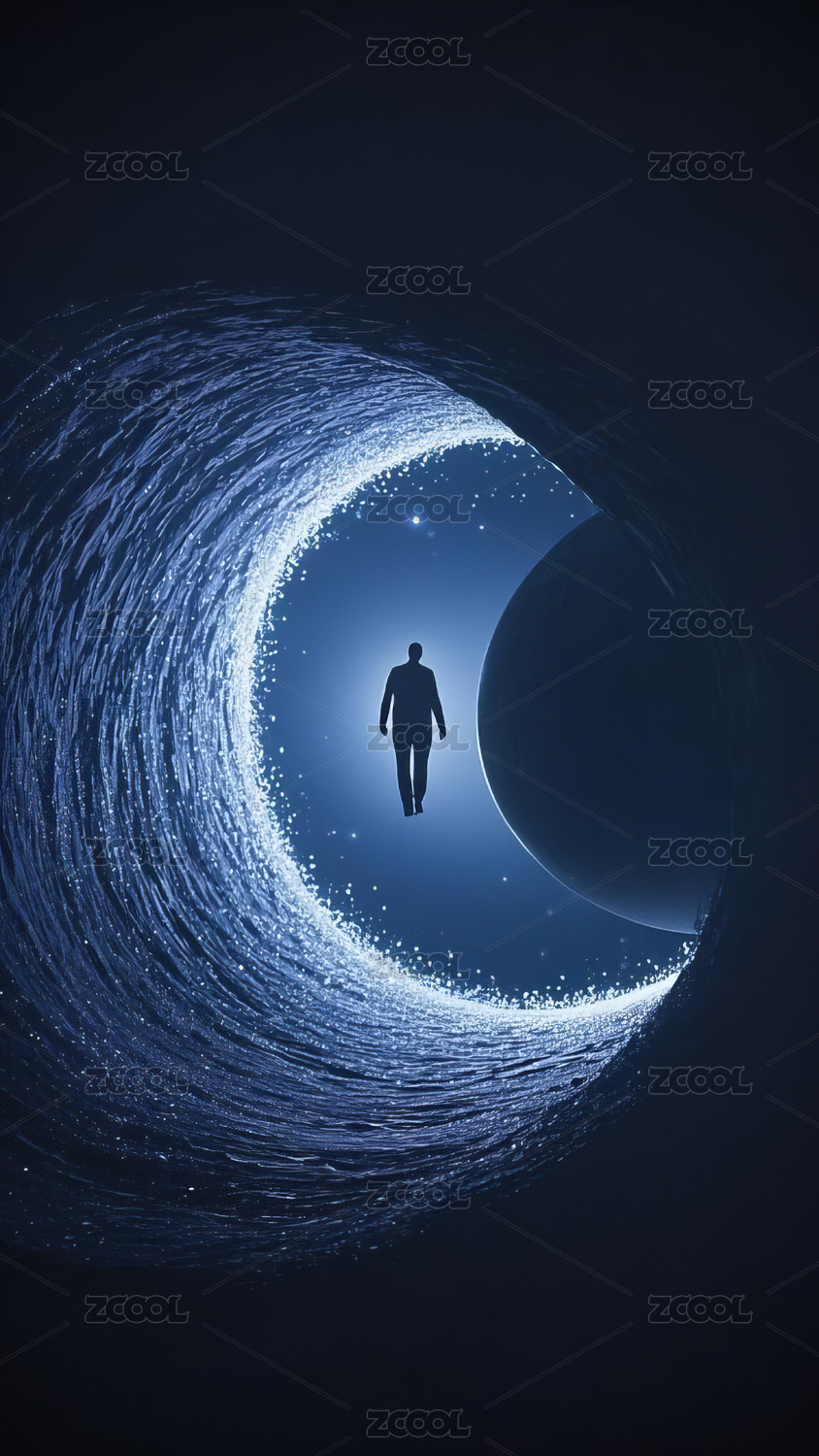 科幻,未来,太空,宇航员,黑洞,插画,宇宙,星系,黑夜,星空