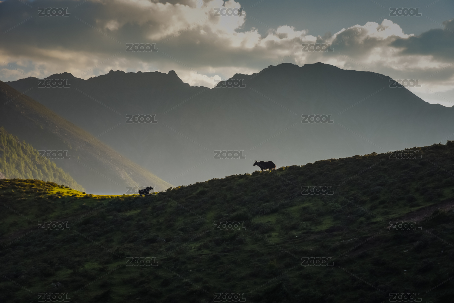 高山,山脉,山脊,野马,牧马,高大,高原,青藏高原,户外,竖构图