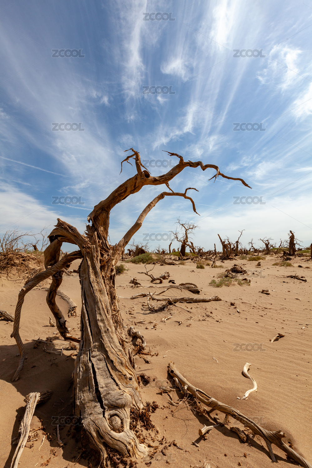 蓝天,蓝,晴,晴朗,旱,胡杨,沙漠,沙,植被,死亡