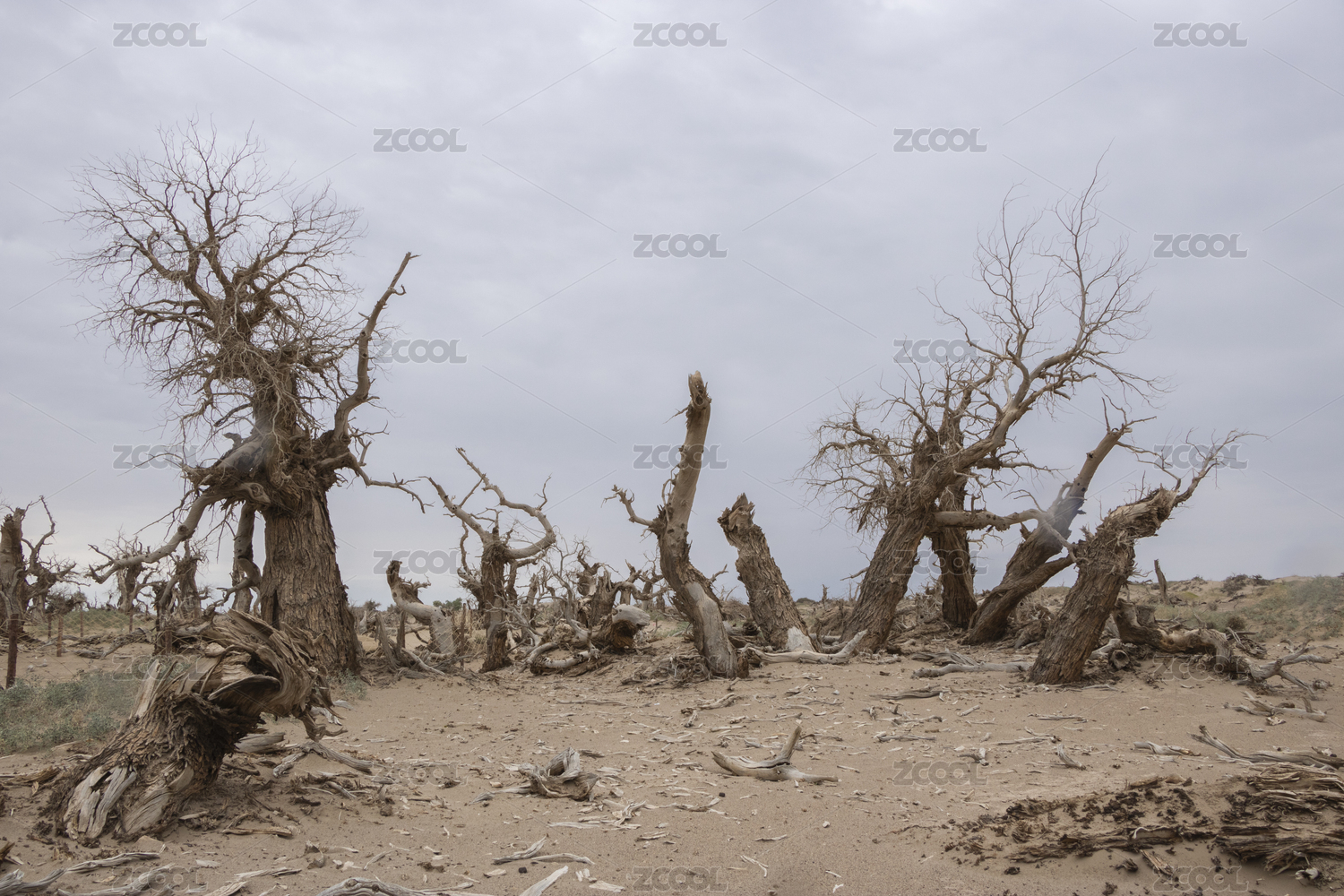 中国内蒙古额济纳旗凄凉的怪树林中枯萎的胡杨