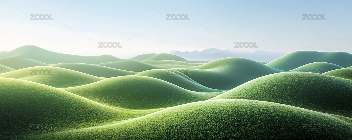 连绵起伏的翠绿山丘上覆盖着闪烁的露珠,