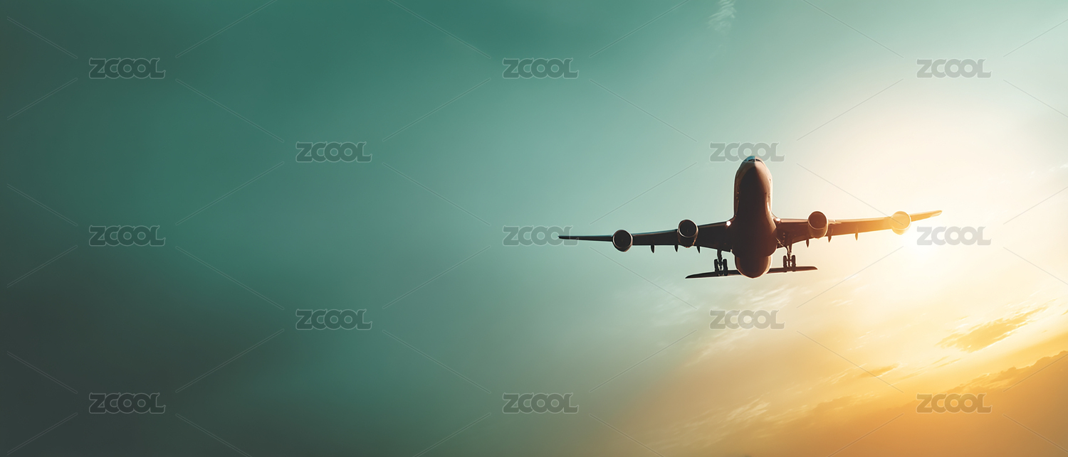亚洲夏季商用客机飞行在美丽晴朗的天空