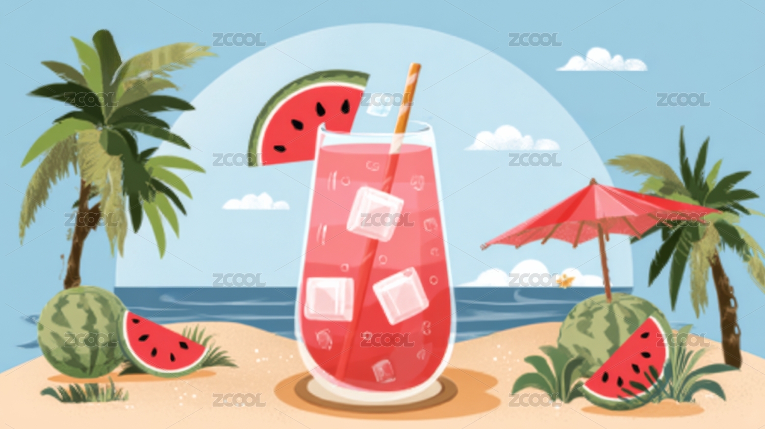 夏日西瓜冰饮插画