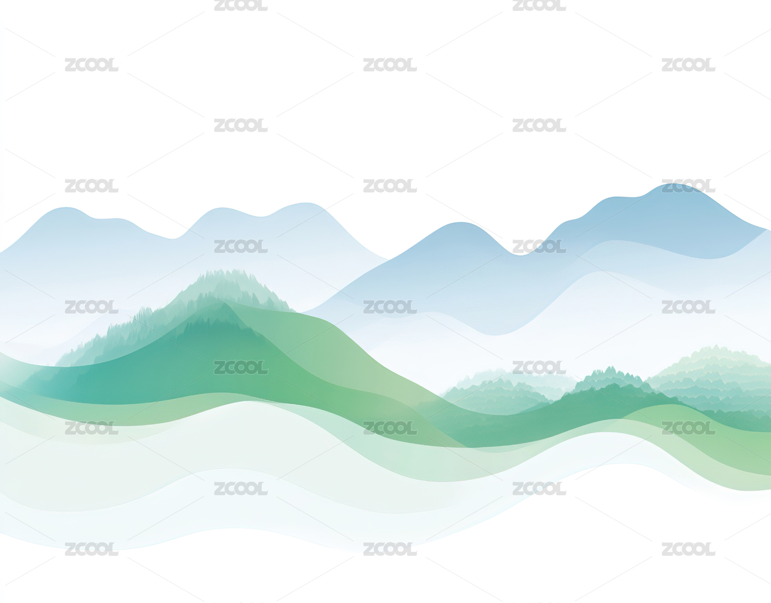 山形水墨渐变插画