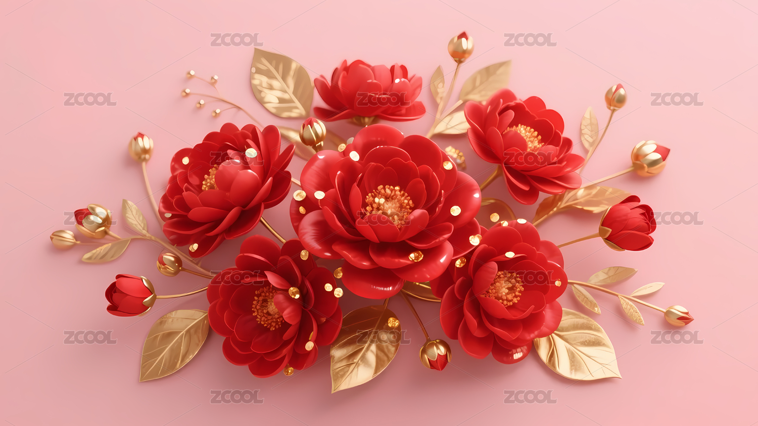 红色花朵与金色装饰