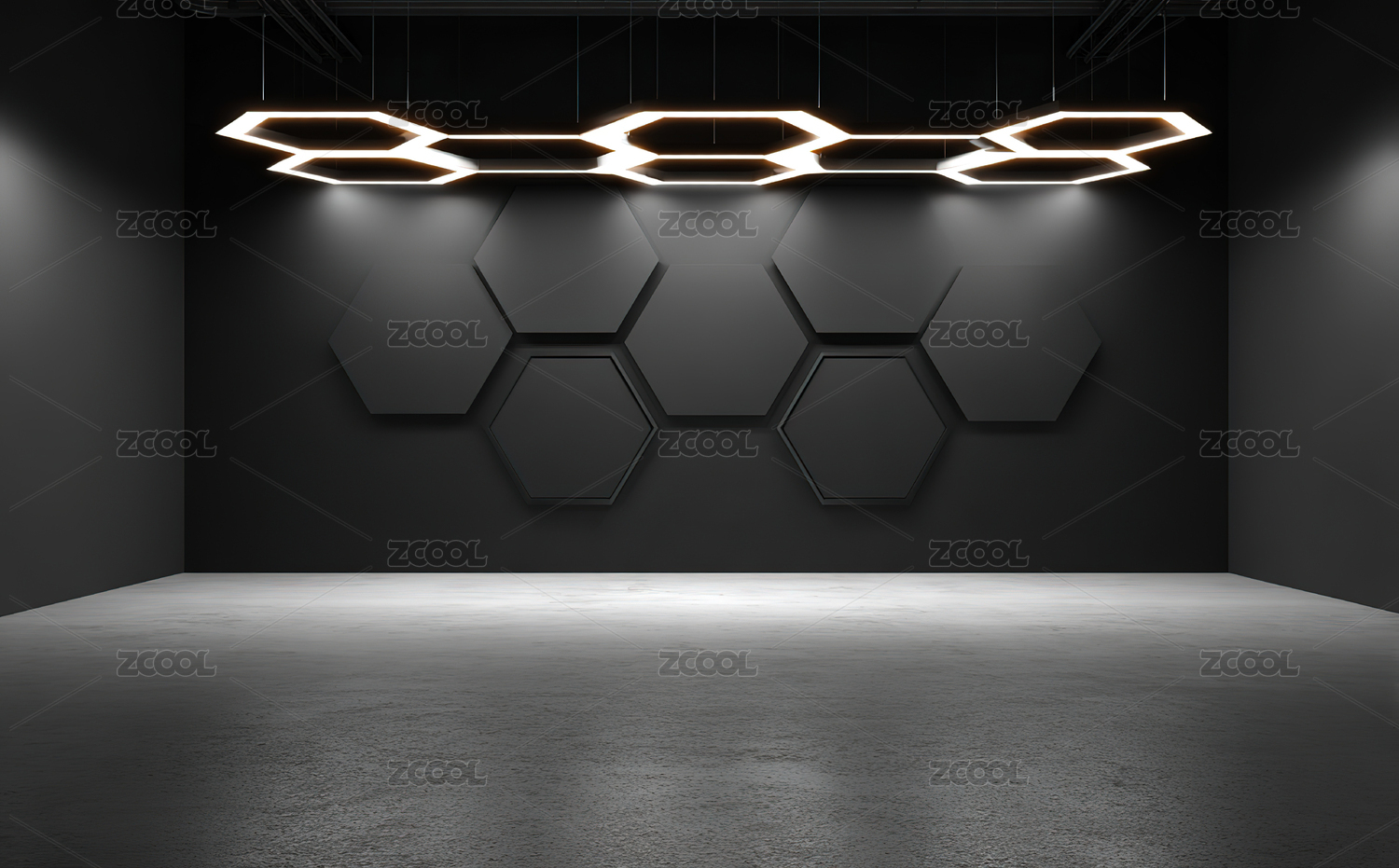 六边形几何墙面空间