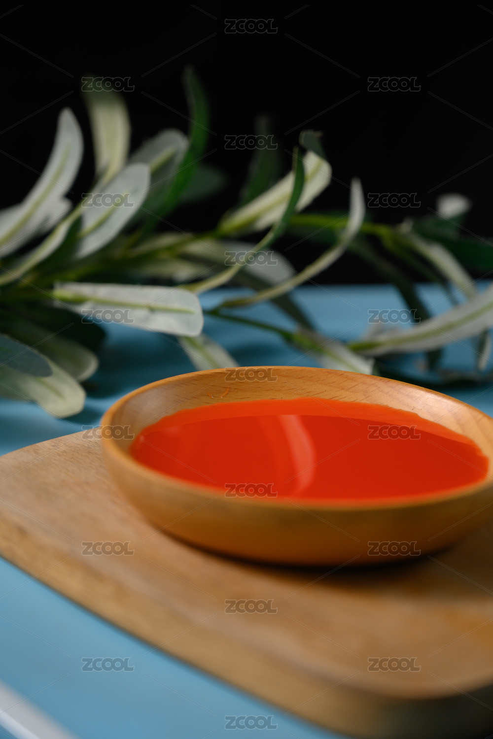 桌面上的盘子里的美味可口的浓缩芭乐汁