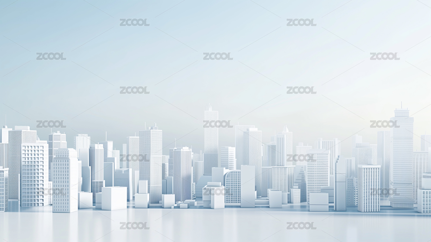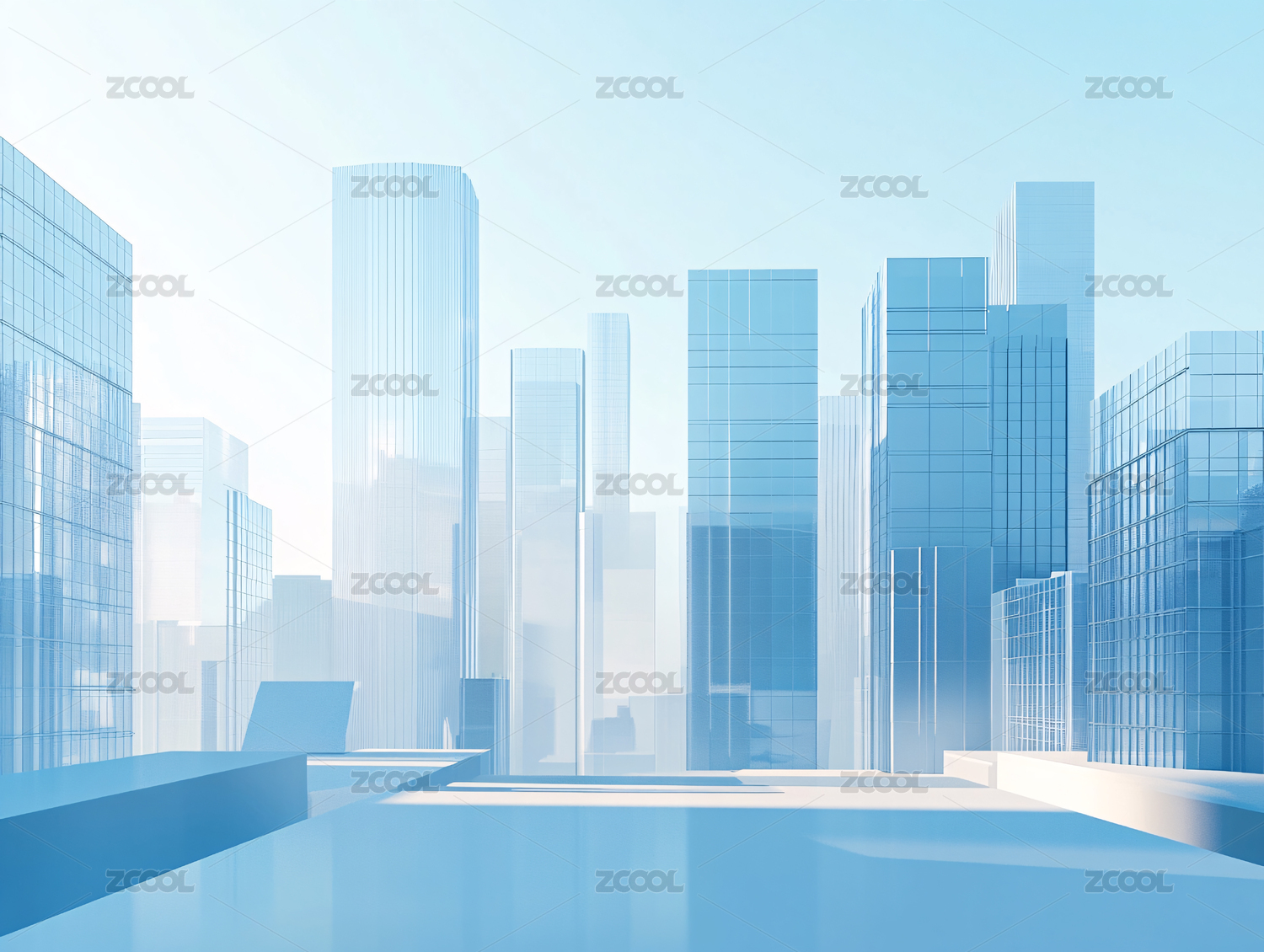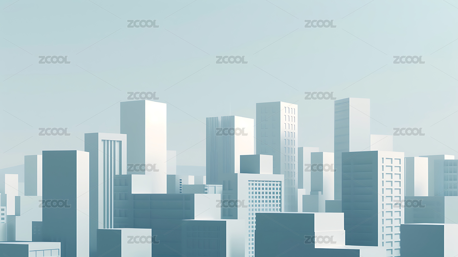 抽象科技科幻清新明亮城市建筑3D立体插画