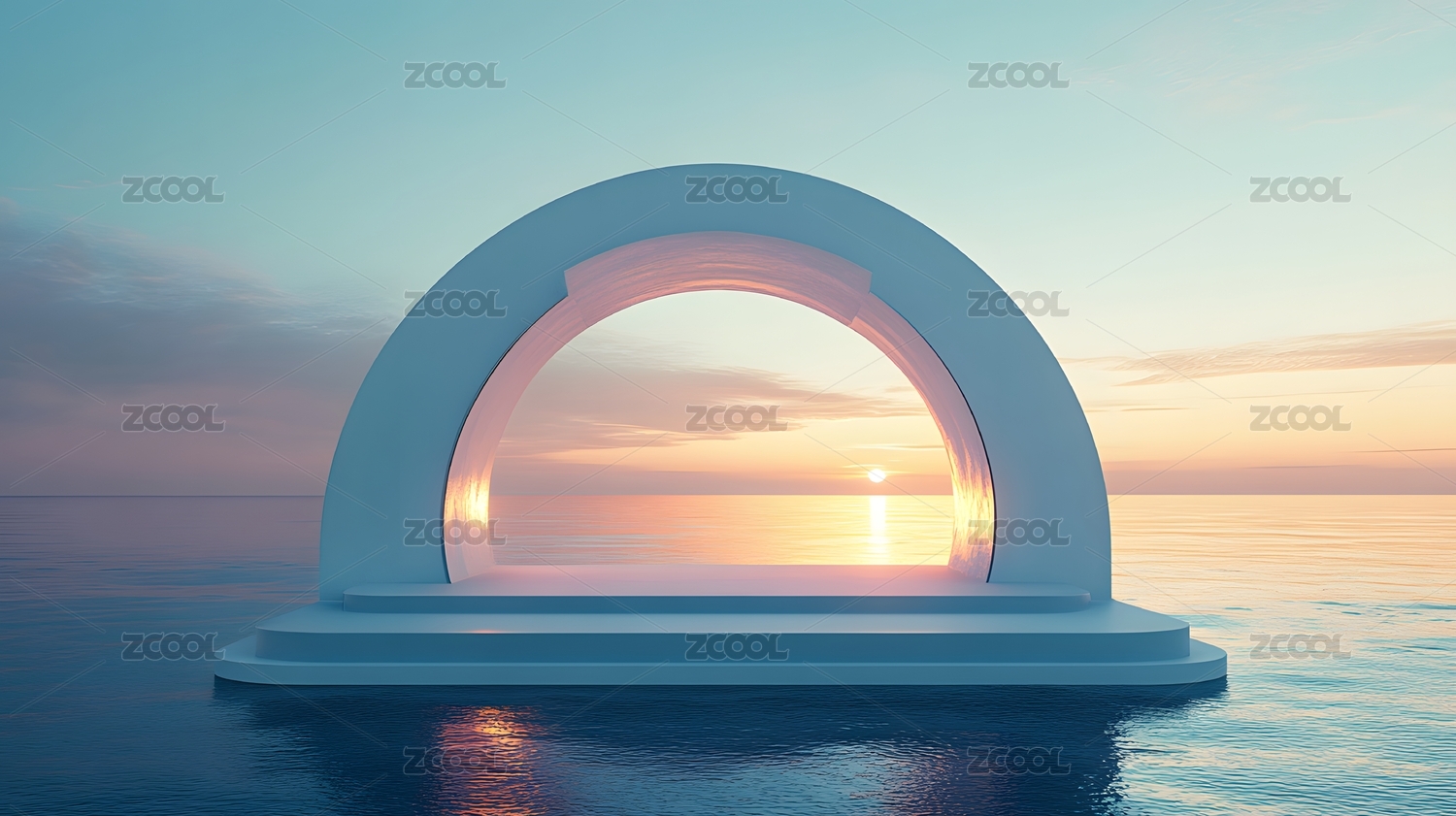 一个巨大的传送门和落日下的未来主义景观
