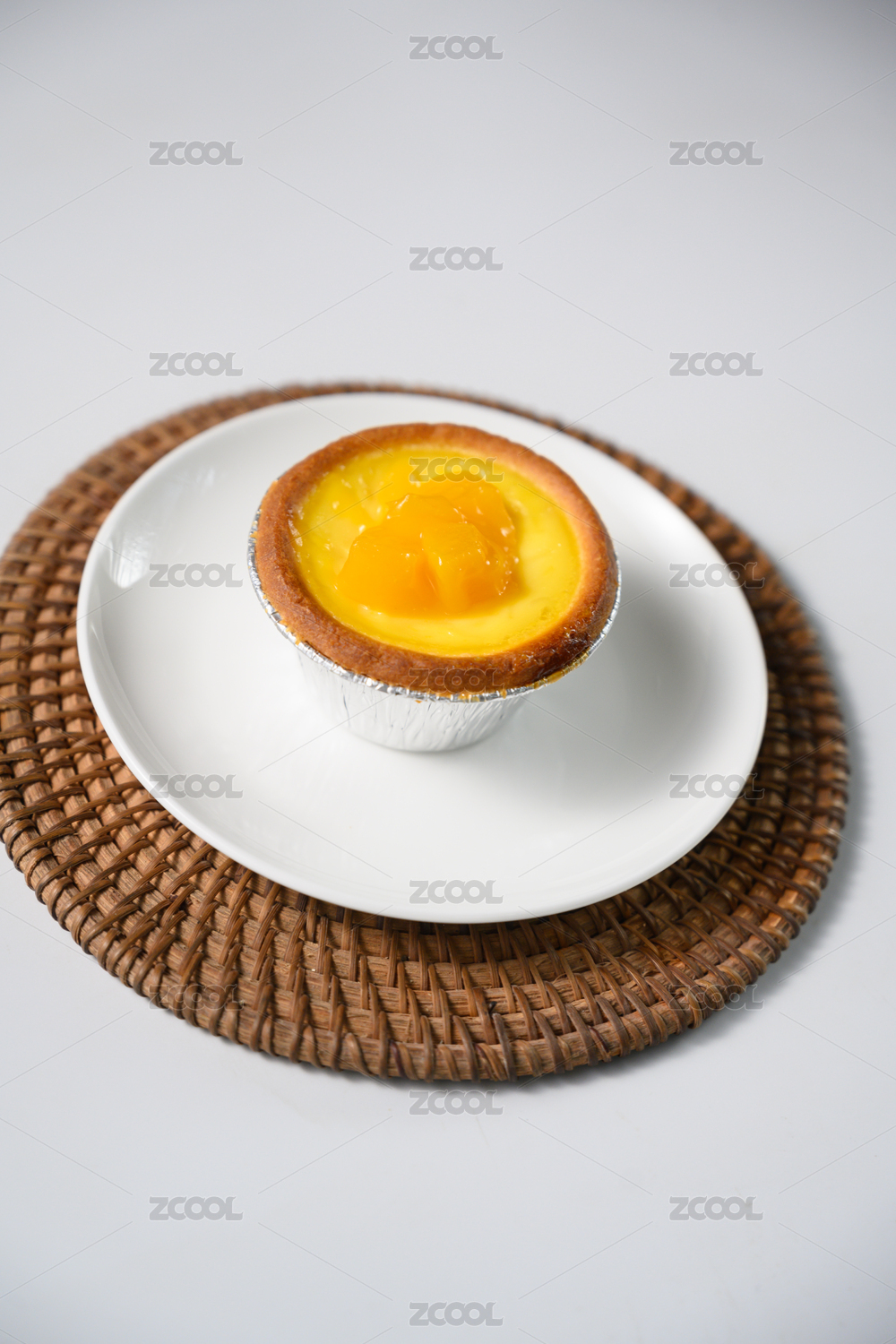 桌面上的盘子里的美味可口的芒果蛋挞