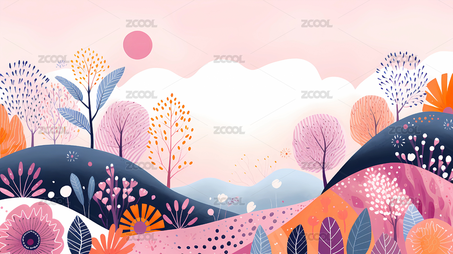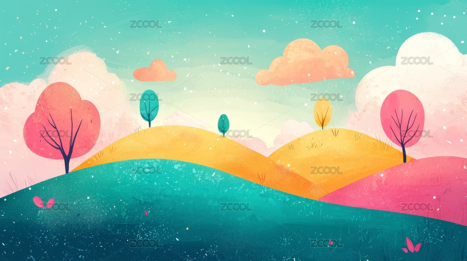 彩色丘陵插画