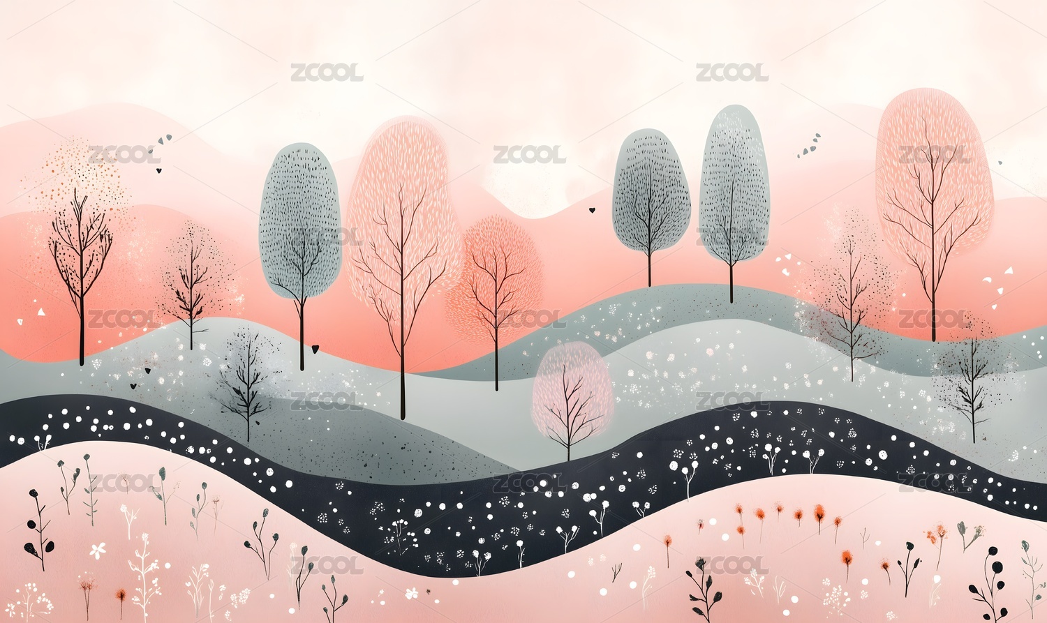 抽象粉色森林场景