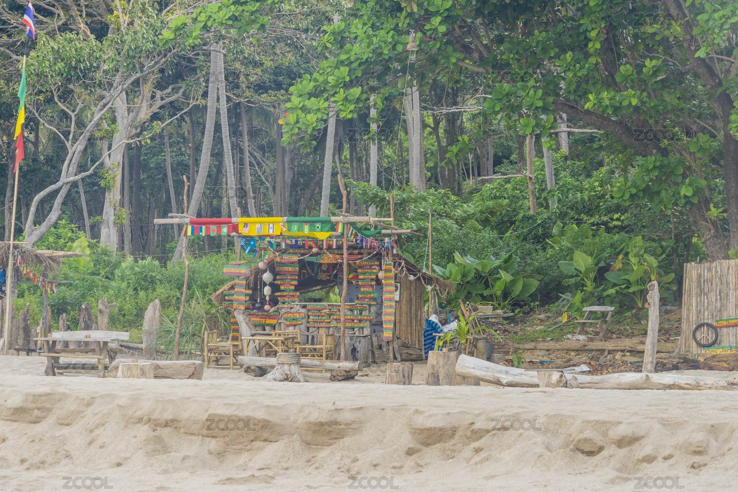 泰国甲米的兰塔岛的沙滩草棚躺椅