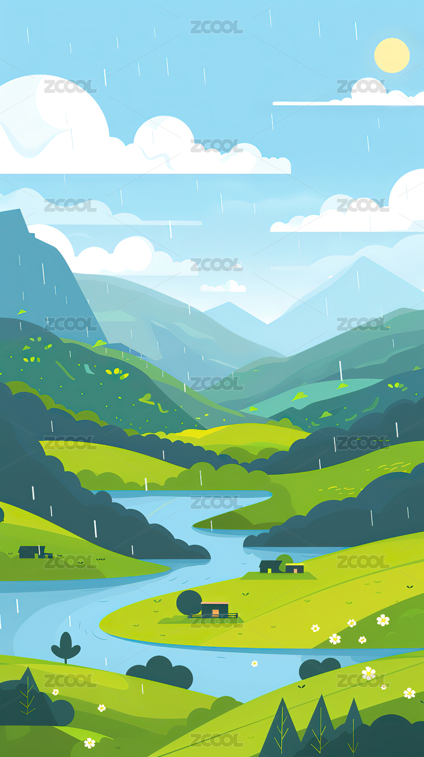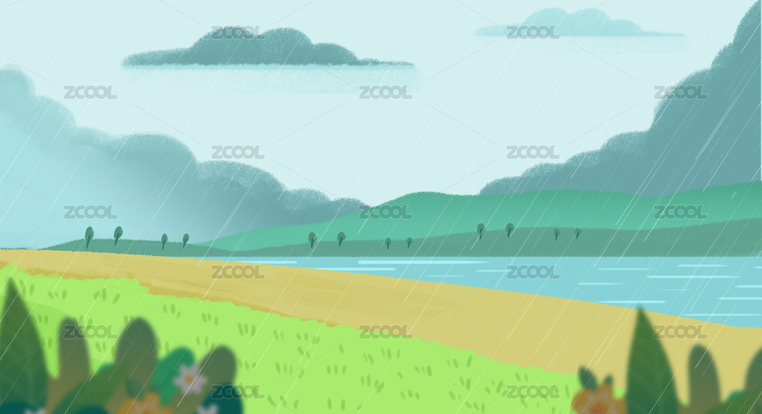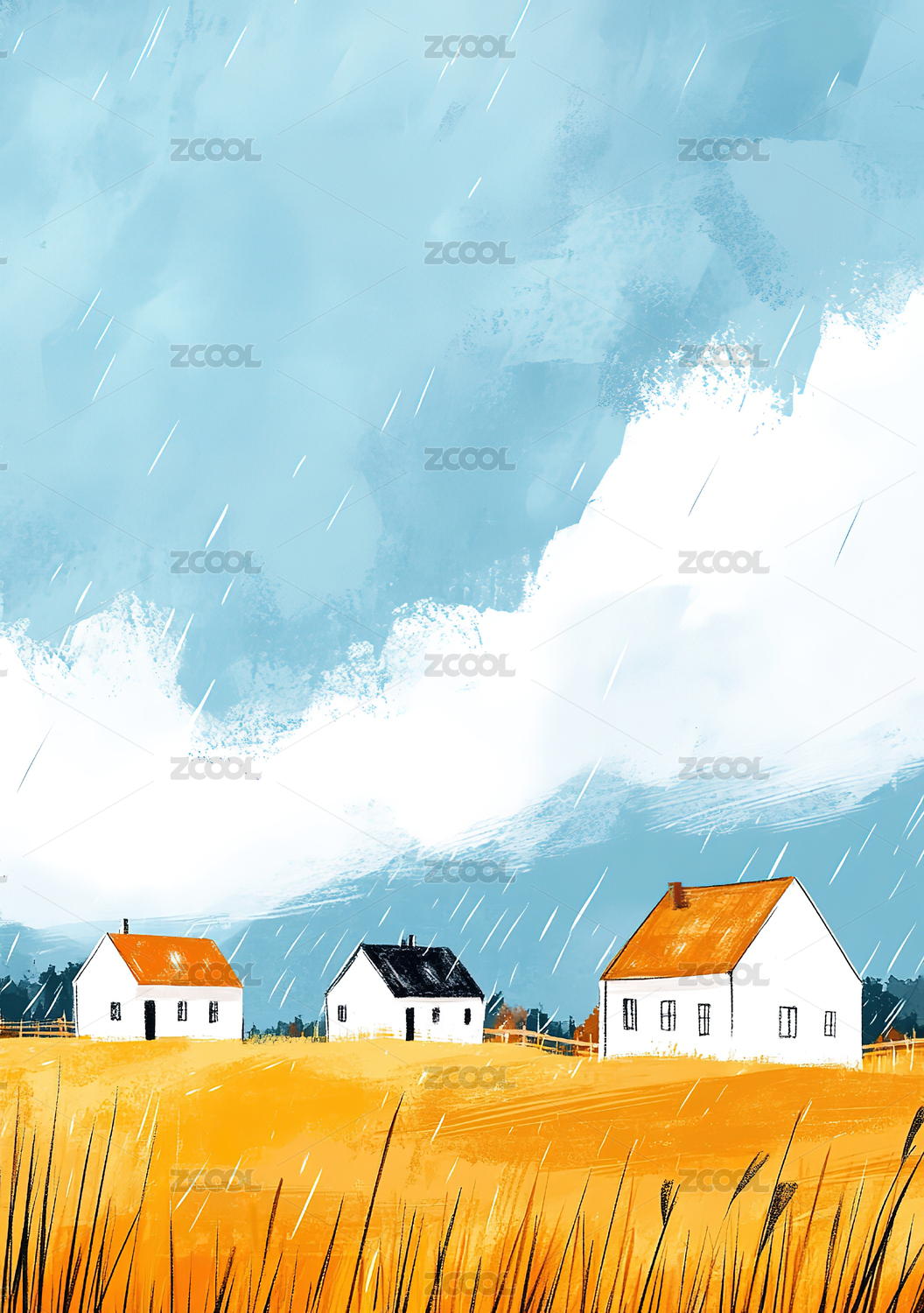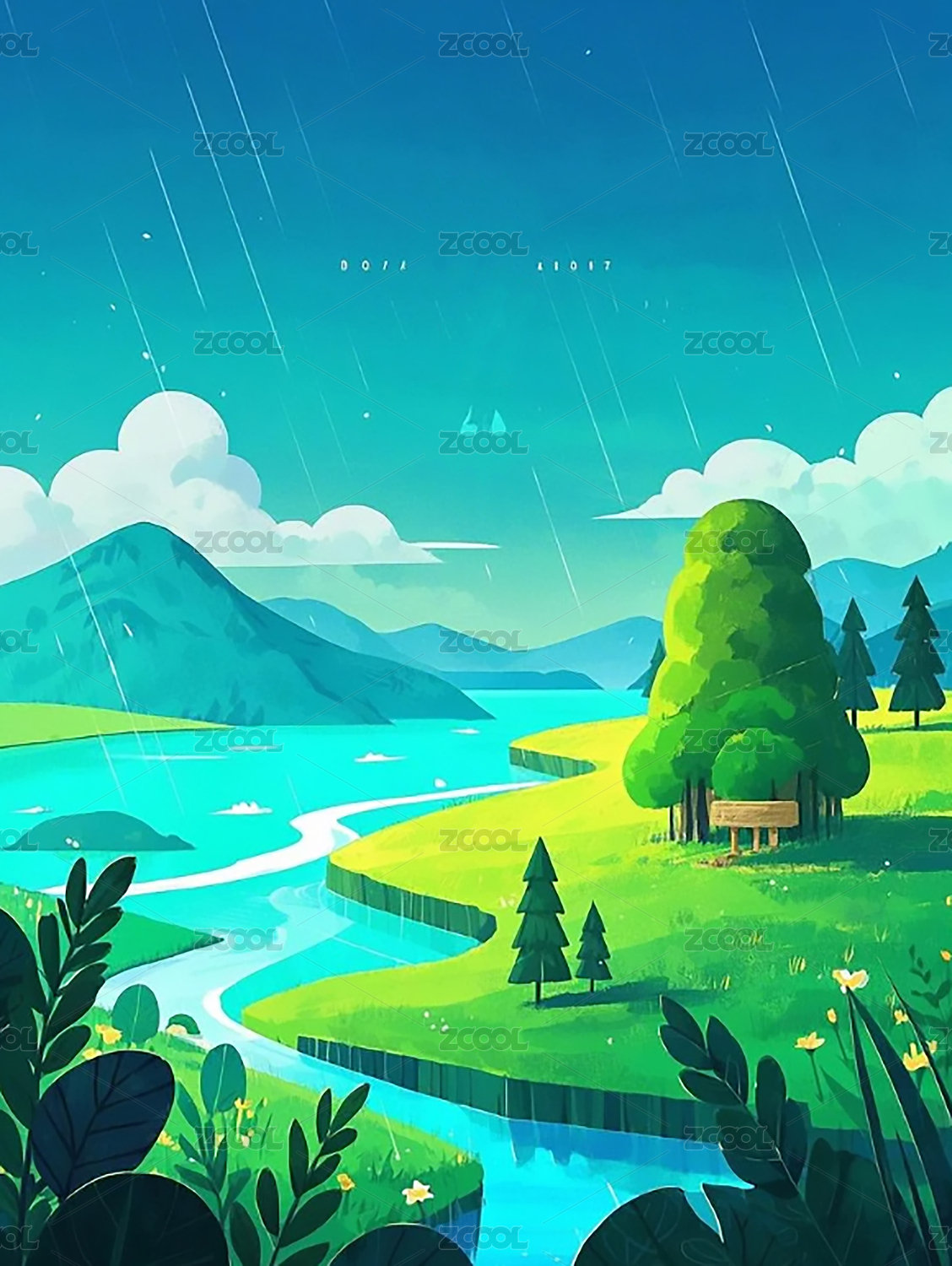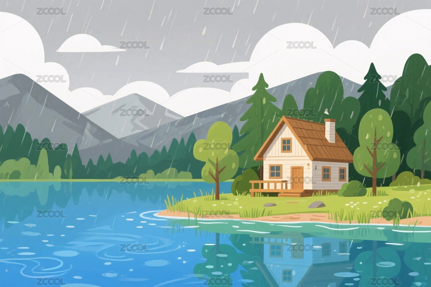 中国传统节气,雨水,风景,帆船,房子,湖水,绿色,宁静,下雨