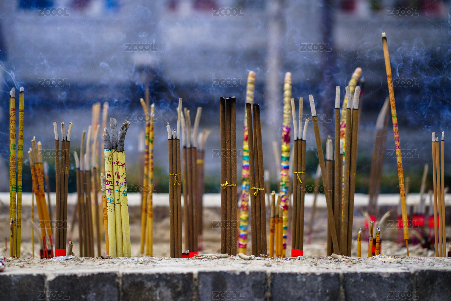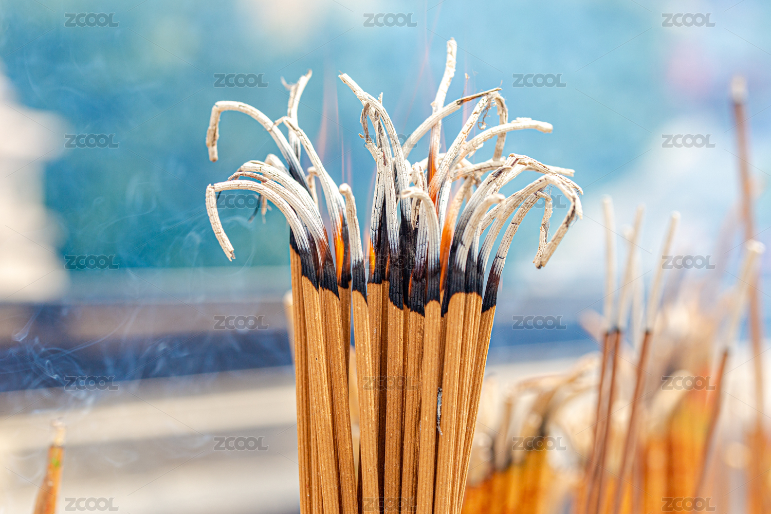 寺庙的烧香飘起缕缕白烟,佛家宗教信仰