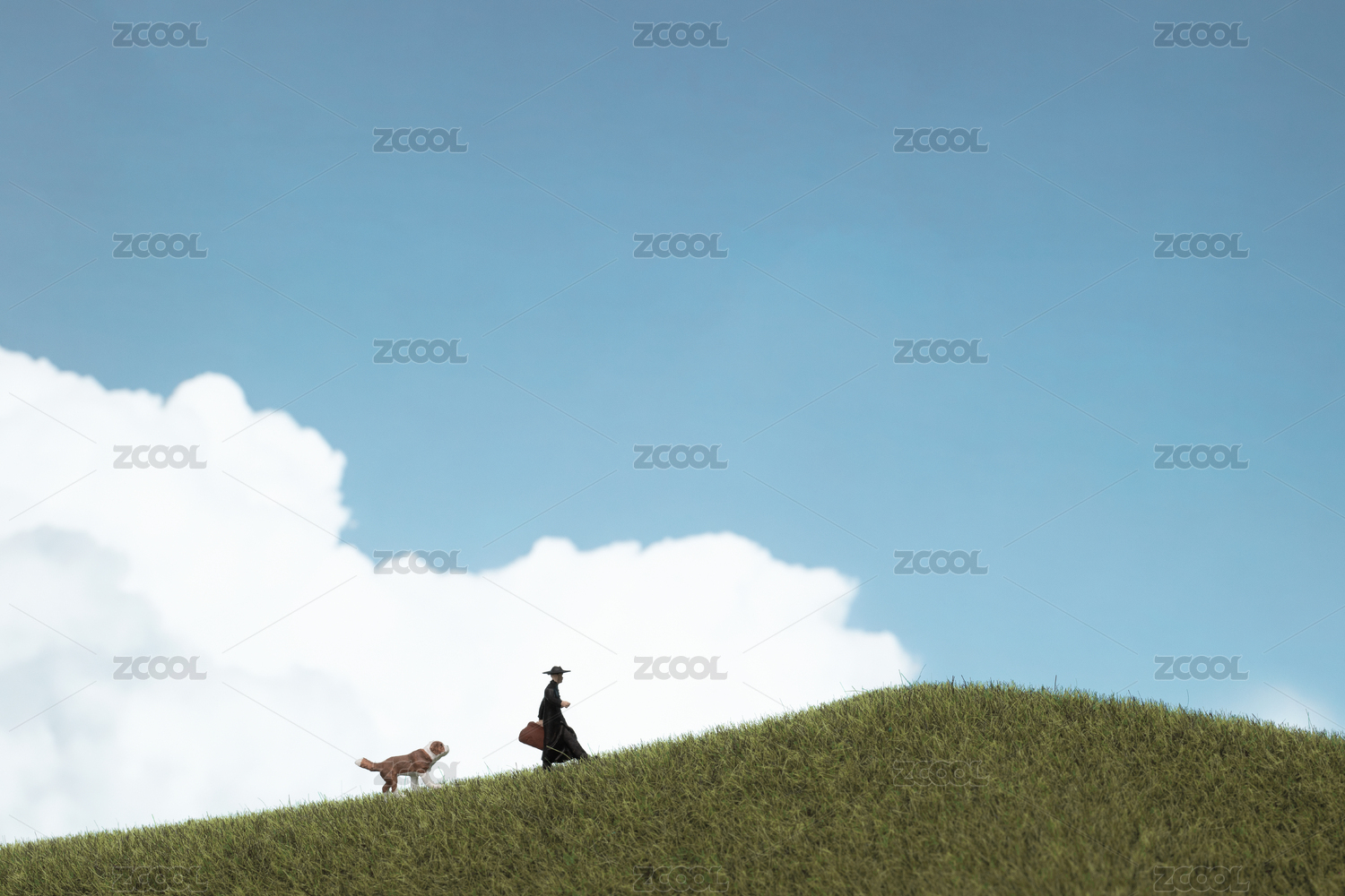 蓝天白云下的创意儿童微距小人