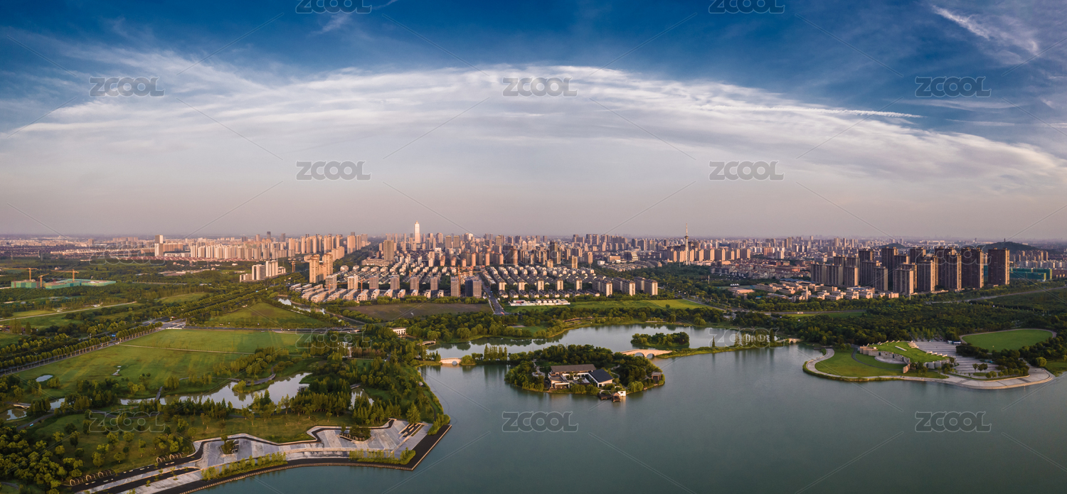 中国江苏苏州尹山湖城市航拍
