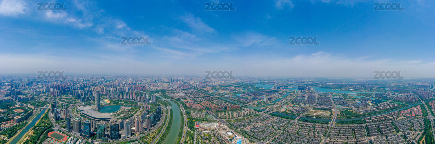 航拍河南郑州郑东新区城市水系河道水网交错