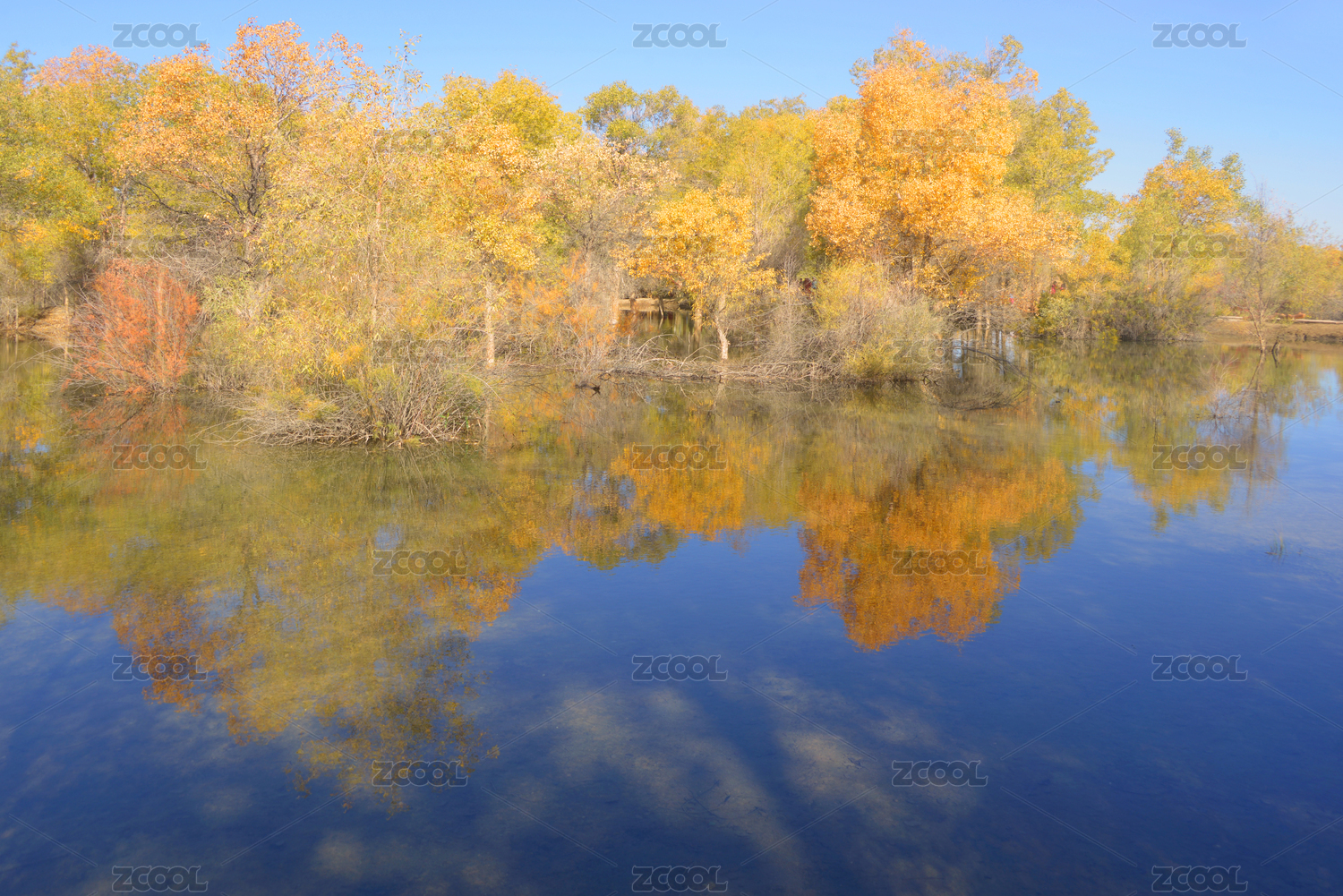 新疆,胡杨林,秋天,金黄,湖面,水平面,反射,倒影,自然,公园