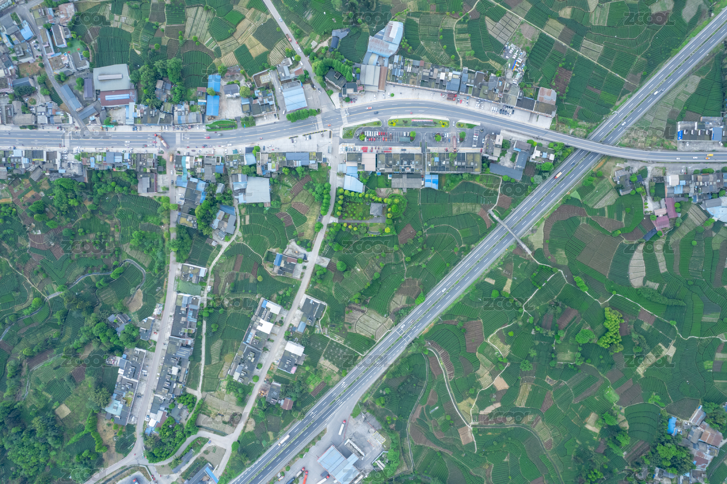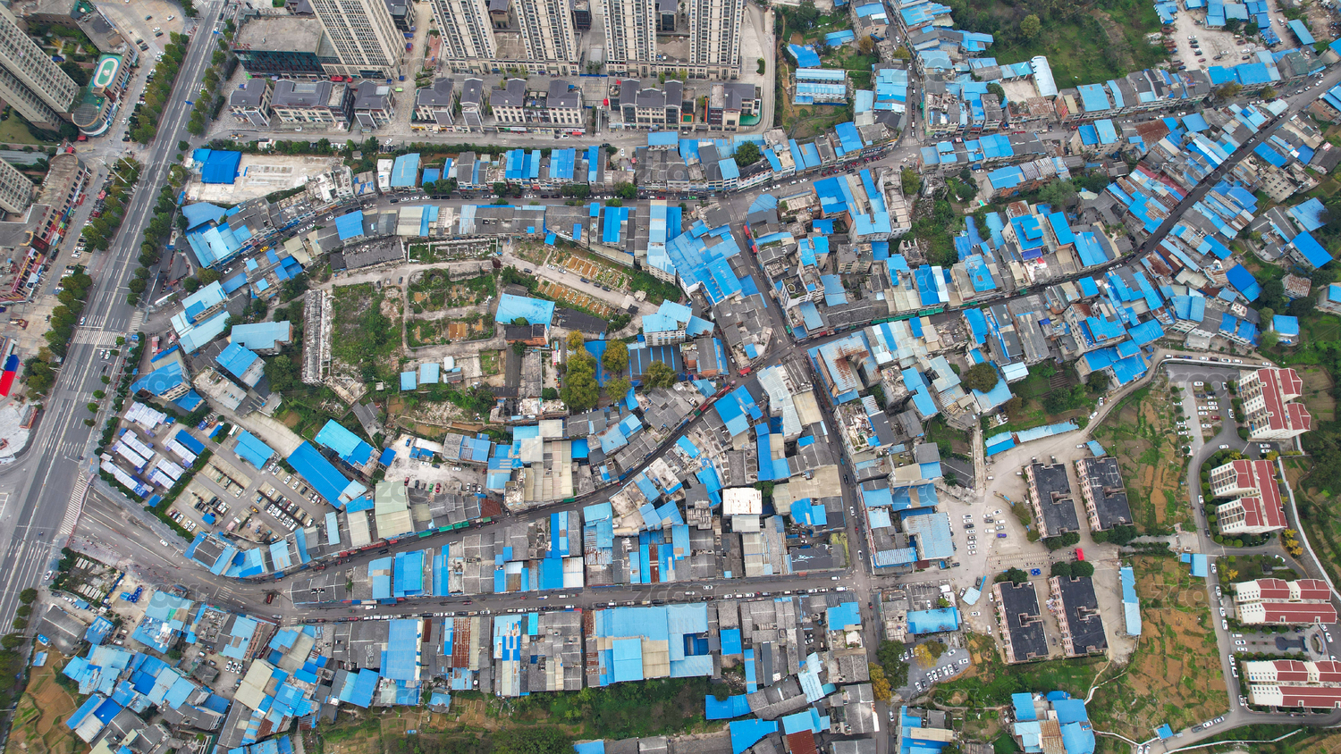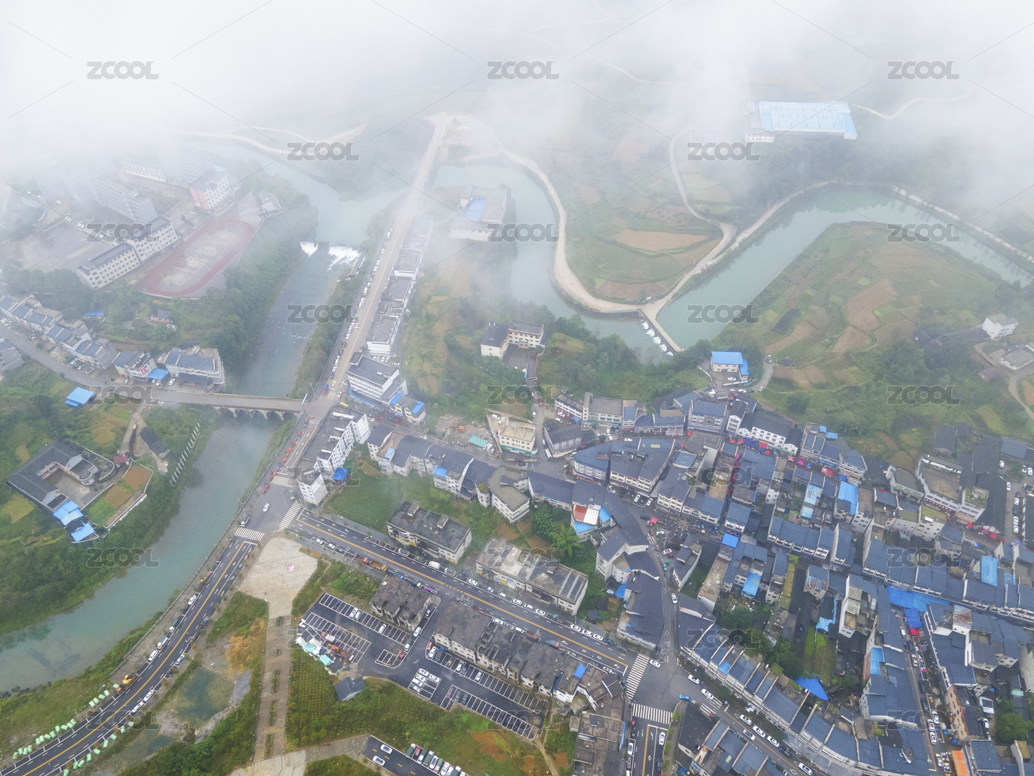 航拍人和乡镇区